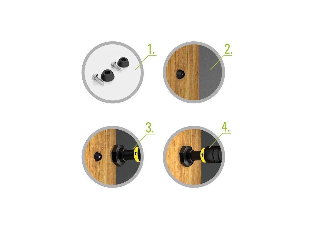 Koncovky hrazdy sú opatrené vrstvou silikónu, ktorý zamedzuje zosunutiu hrazdy zo svojho miesta, pre ešte pevnejšie inštaláciu sú súčasťou balenia 2 gumové zarážky, ktoré sa naskrutkujú do zárubní a hrazda sa nasadí na ne. Špeciálne, žltá objímka je posuvná a zamedzuje povolenie dotiahnuté hrazdy. Penové návleky sú opatrené vrstvou, ktorá odvádza pot a tým zamedzuje skĺznutiu dlane. Oceľová konštrukcia je ošetrená základovou farbou, antikoróznou vrstvou a práškovým lakom.