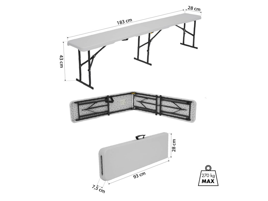 Sada skladacieho nábytku, ktorá zahŕňa stôl NC1618 a dve lavice NC3404, je perfektným riešením pre všetkých, ktorí hľadajú praktické, stabilné a ľahko prenosné vybavenie pre vonkajšie aj vnútorné použitie. Či už sa chystáte na rodinnú oslavu, firemnú akciu, festival alebo kempovanie, táto sada zaistí maximálny komfort a funkčnosť.