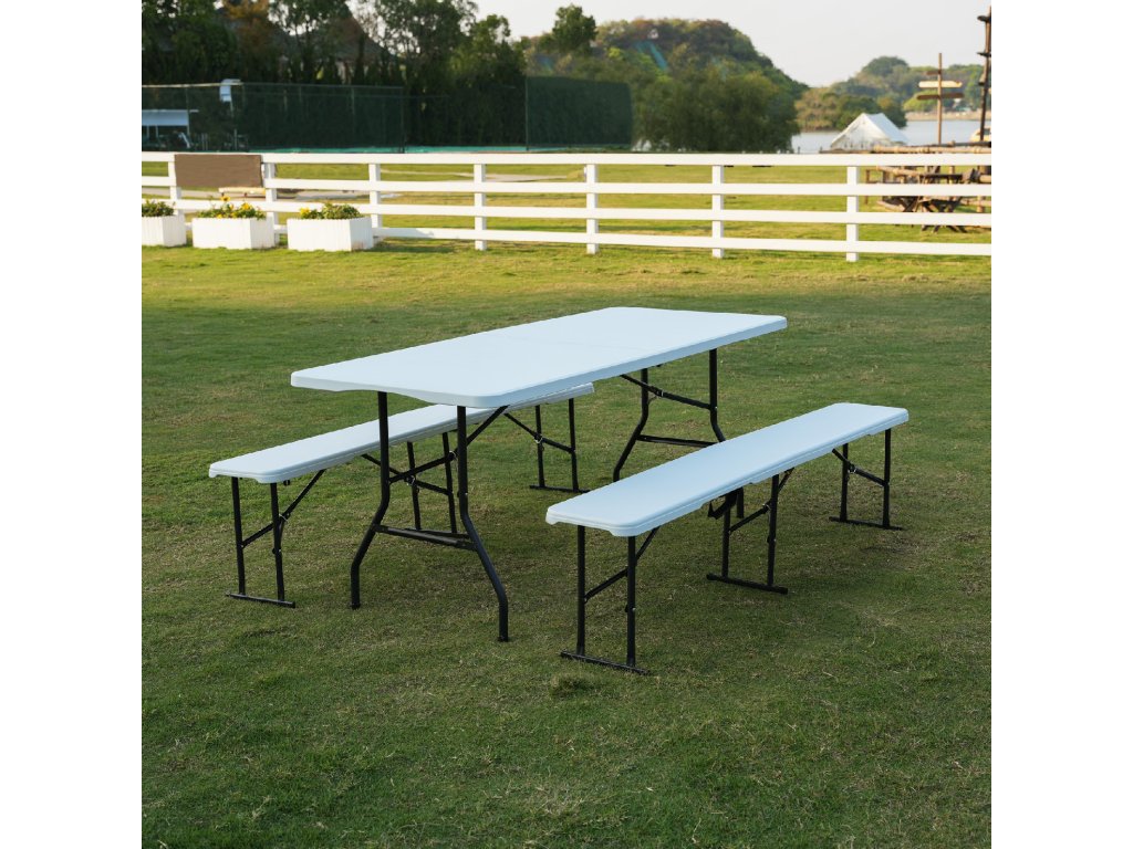 Kempingová sada skladacieho stola NC1618 a 2 lavíc NC3404 NILS Camp v bielej farbe