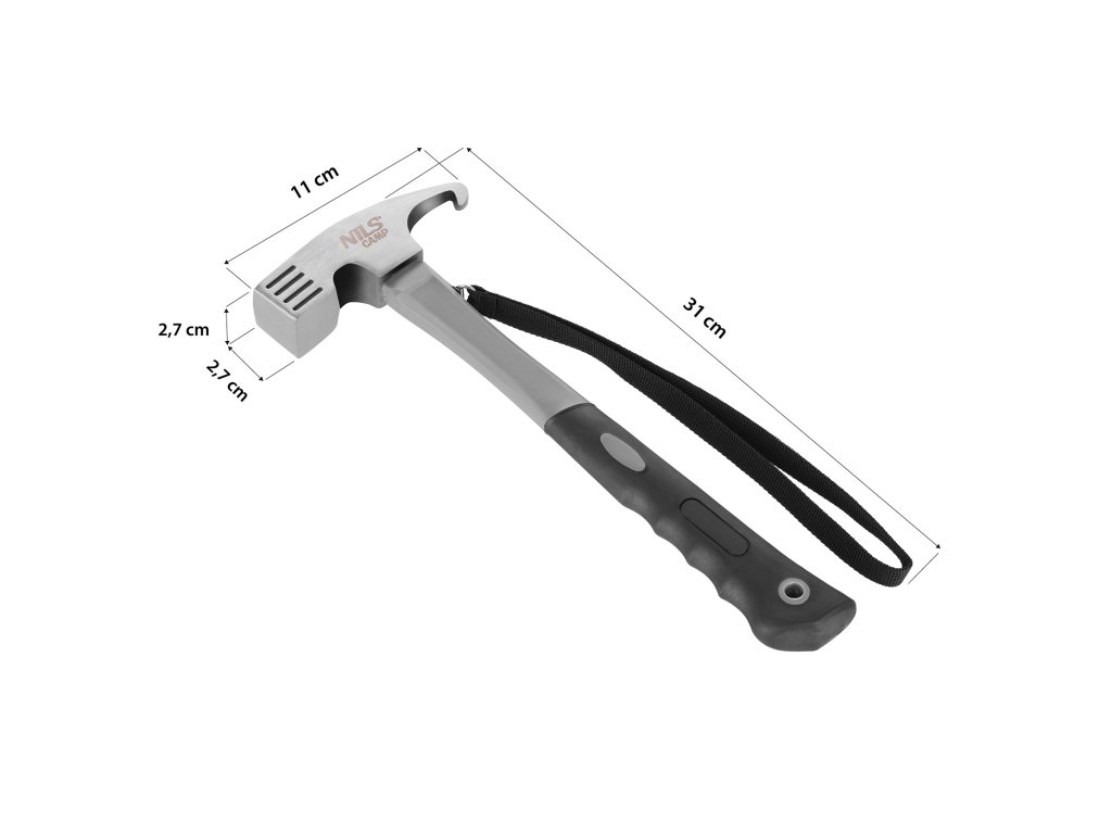 Kempingové kladivo NC17109 značky NILS Camp je nepostrádateľným nástrojom vo výbave každého milovníka kempovania, survivalu a outdoorových výprav. Spoľahlivo poslúži pri zatĺkaní stanových kolíkov alebo budovaní provizórneho táboriska – je navrhnuté s dôrazom na odolnosť a pohodlie pri používaní v teréne.
