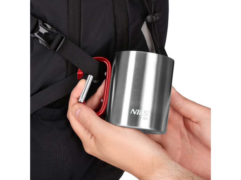 Kempingový hrnček NILS Camp NC17110 s karabínou 300ml červený