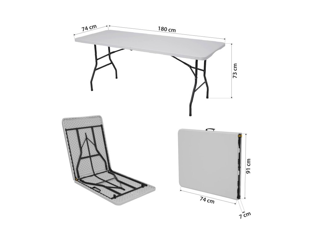 Jednou z hlavných predností modelu NC1618 je jeho robustná a premyslená konštrukcia. Horná doska je vyrobená z odolného PVC s hladkým povrchom, ktorý nielen dobre vyzerá, ale je tiež odolný proti škvrnám, ľahko sa čistí a odoláva poveternostným vplyvom. Zosilnený oceľový rám zaisťuje stabilitu stola aj pri väčšom zaťažení. Maximálna nosnosť až 150 kg umožňuje stôl bezpečne používať pri servírovaní jedla, ukladaní riadu alebo rozostavovaní vybavenia na akciách.
