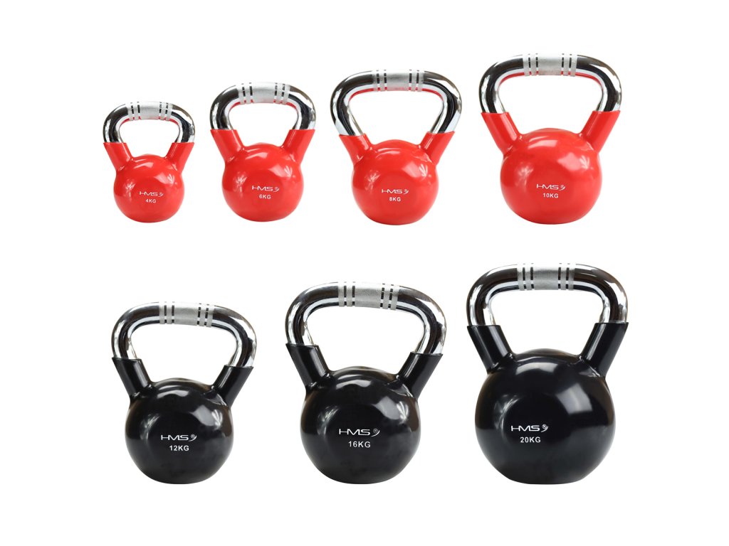 Kettlebell HMS KTC je vyrobený z vysoko kvalitnej liatiny pokryté vinylom a je vybavený chrómovaným úchytom.