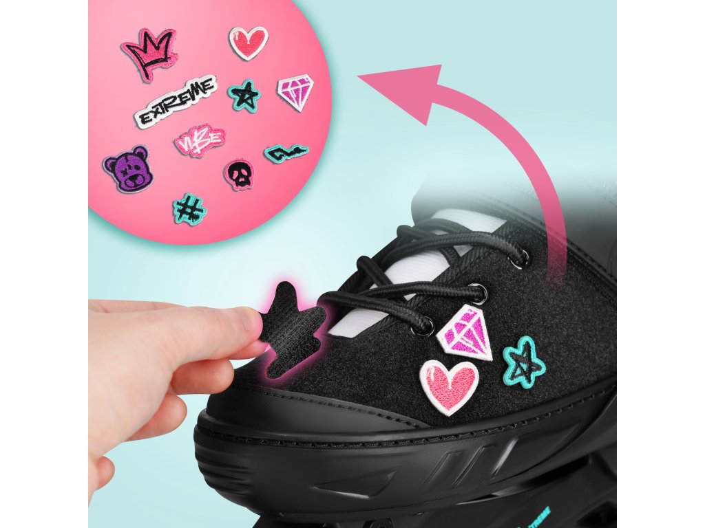 Model sa vyznačuje systémom personalizácie založeným na vymeniteľných dekoratívnych nášivkách upevnených pomocou suchého zipsu. Toto riešenie inšpirované trendom individuality umožňuje odlíšiť sa od klasických modelov a dodať korčuliam osobitý vzhľad.