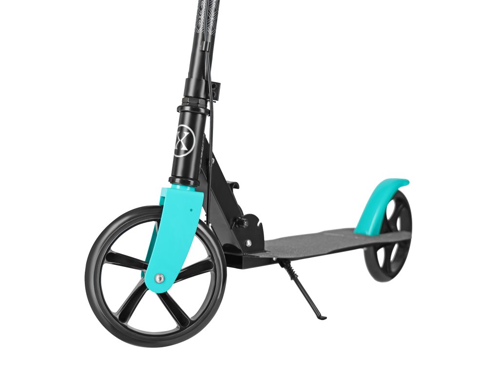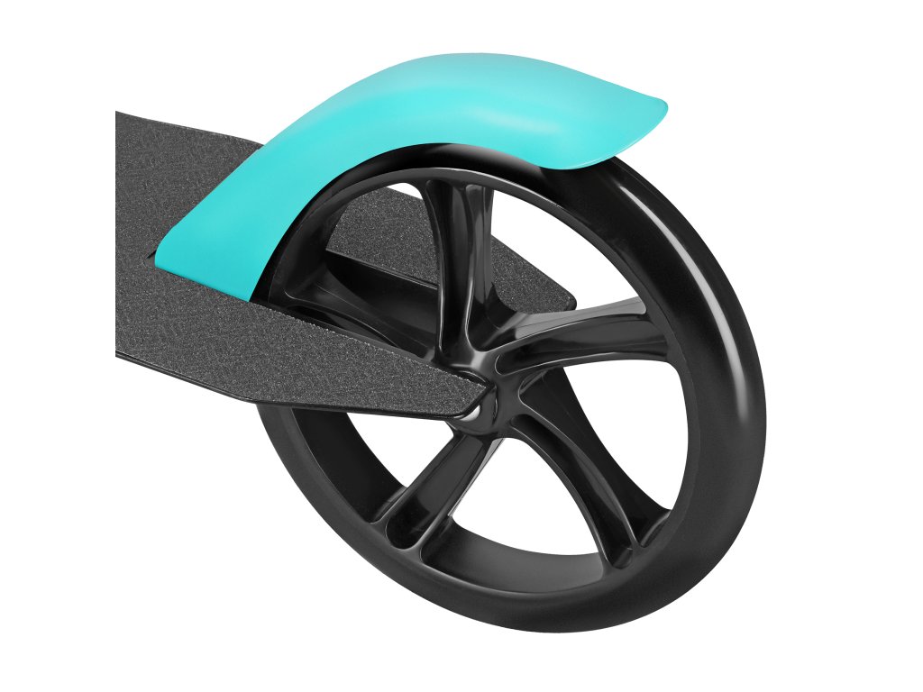 Veľké kolesá s priemerom 200 mm sú vyrobené z odolného polyuretánu (PU) a sú osadené ložiskami ABEC 7, táto kombinácia zaisťuje plynulú jazdu na mestských chodníkoch a chodníkoch. Ideálna tvrdosť a flexibilita kolies zaručuje stabilitu aj dynamiku pohybu – bez ohľadu na to, či idete po asfalte alebo dlažbe.