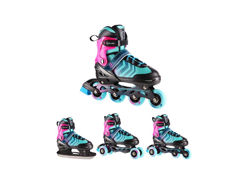 Korčule NILS Extreme NH18192A 4v1 sú určené na rekreačné korčuľovanie pre začiatočníkov a stredne pokročilých korčuliarov. NH18192A kombinuje pútavý dizajn a kvalitné materiály. Model má vymeniteľný podvozok, takže korčule môžete používať na asfalte aj na ľade.