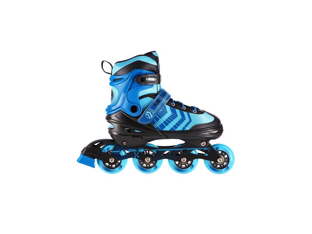 Hliníkový podvozok je osadený PU kolieskami s tvrdosťou 82A, ktoré predstavujú ideálny kompromis medzi rýchlosťou, odolnosťou a pohodlím. Kolieska sú vybavené ložiskami ABEC 7, ktoré zabezpečujú svižnú a plynulú jazdu. Skelet korčule je vyrobený z polypropylénu, ktorý dobre prenáša energiu z odrazu na kolieska a vydrží aj pád. Pohodlná, polomäkká topánka je vyrobená z kombinácie EVA a peny s vysokou hustotou. Vnútorná topánka má na špičke vetracie otvory, takže dobre odvetráva a noha sa menej potí. Zapínanie je klasická trojkombinácia - šnurovanie, pásik na suchý zips a dvojdielna pracka. Pravá korčuľa je vybavená brzdou.