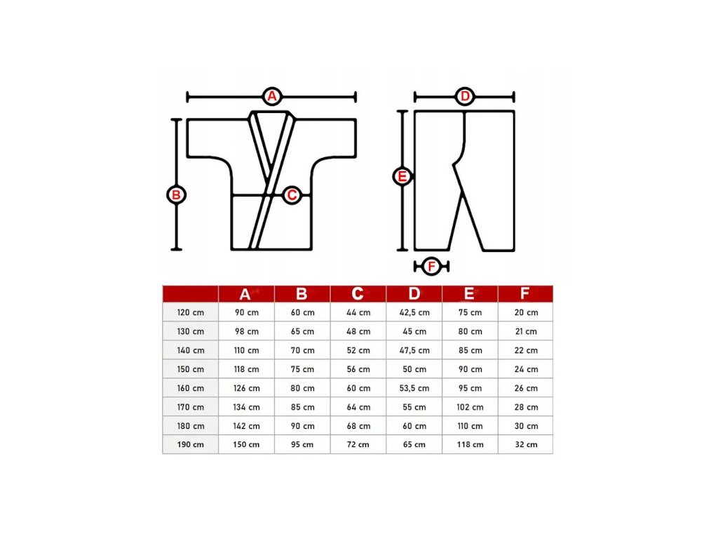 | Veľkosť | 120 cm | 130 cm | 140 cm | 150 cm | 160 cm | 170 cm | 180 cm |