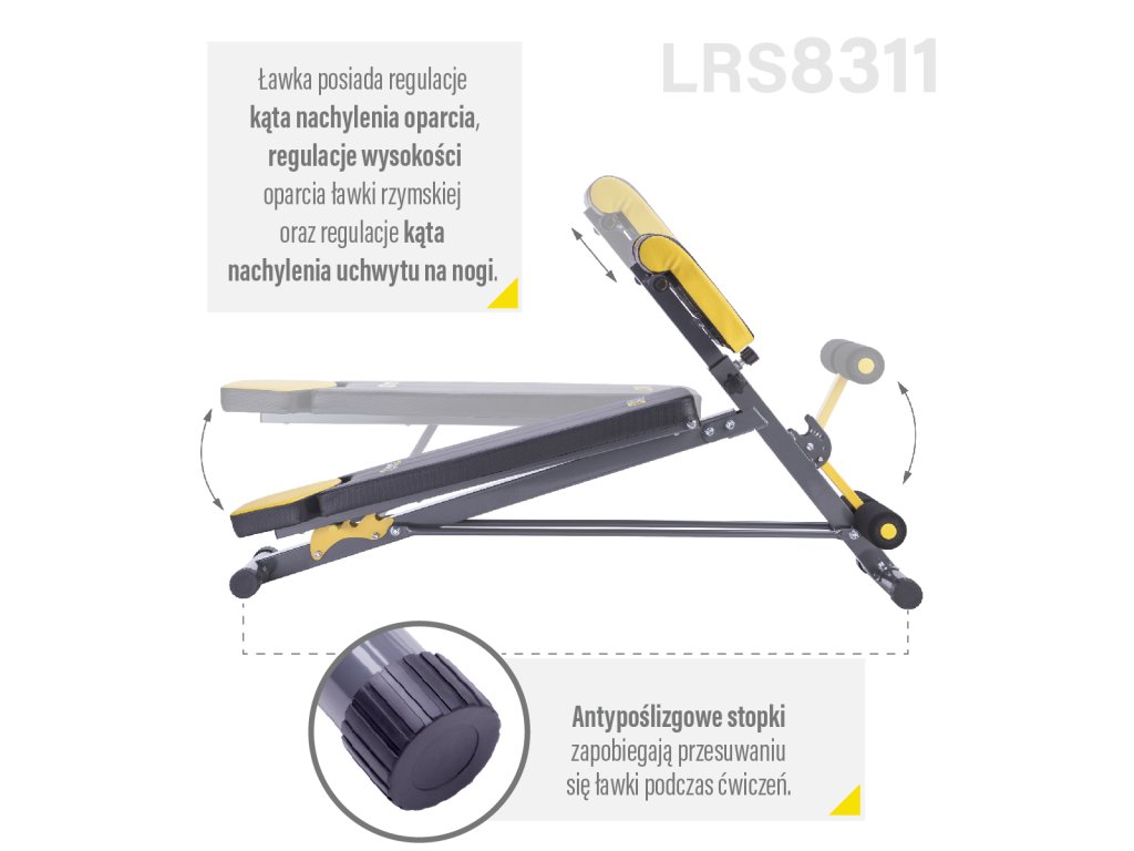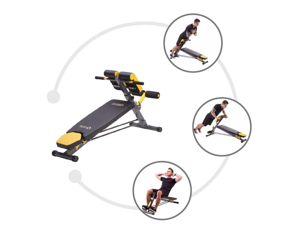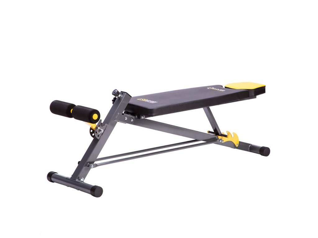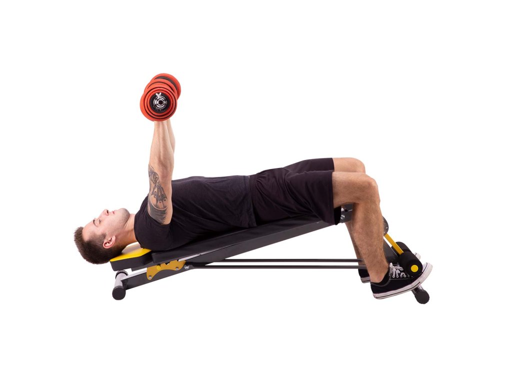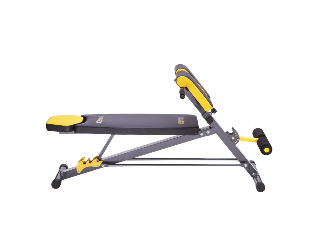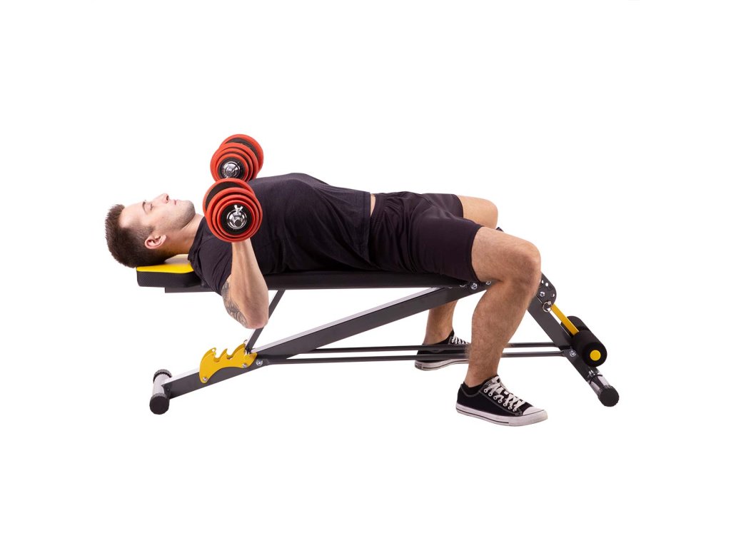 Chrbtová opierka je nastaviteľná do 3 polôh, v horizontálnej polohe možno na lavičke vykonávať väčšinu cvikov s činkami, ak je chrbtová opierka nastavená do záporného uhla, získame šikmú lavičku na posilňovanie brucha.