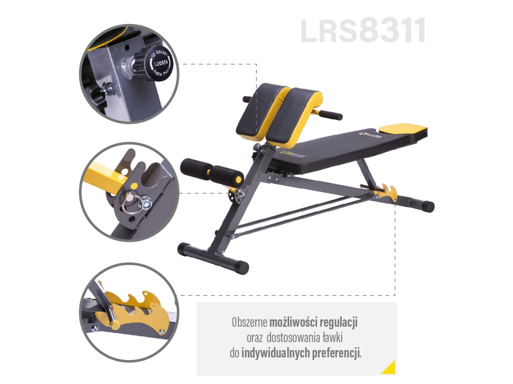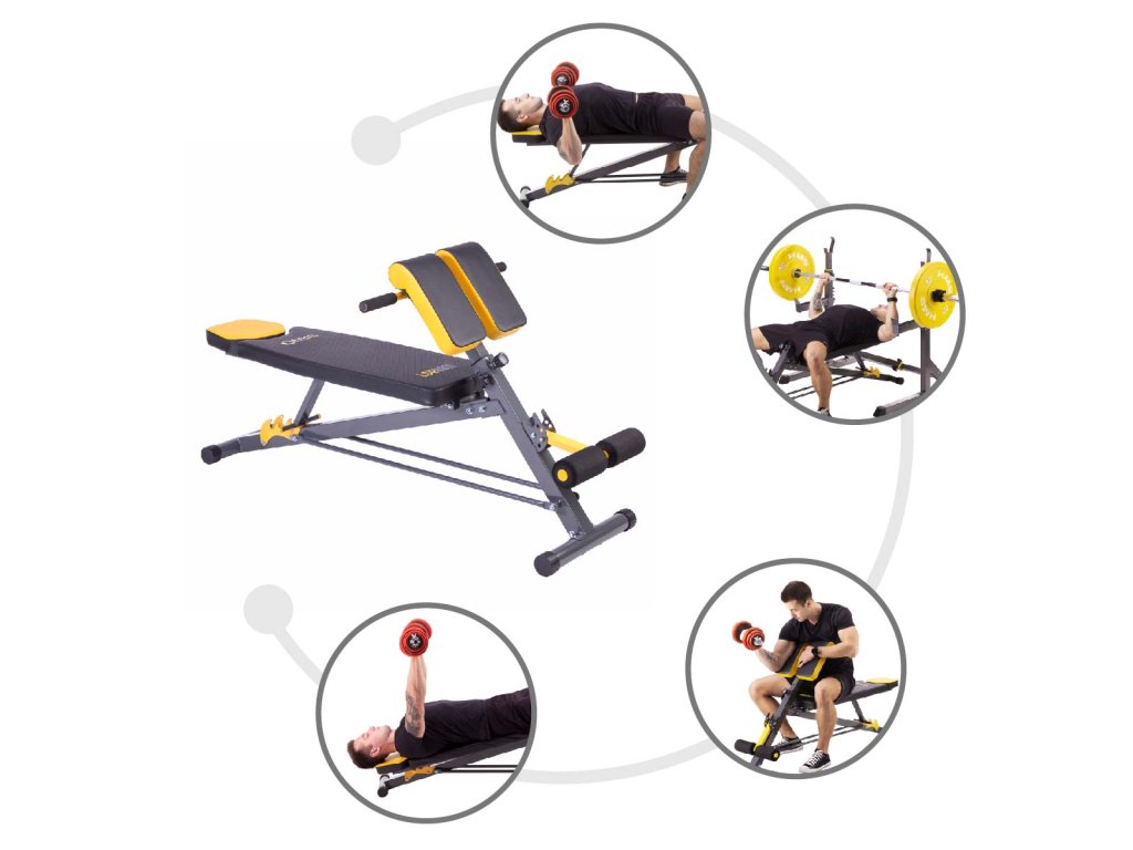 Lavica HMS Premium LSR8311 kombinuje klasickú lavicu, šikmú lavicu, bicepsovú lavicu a hyperextenziu.
