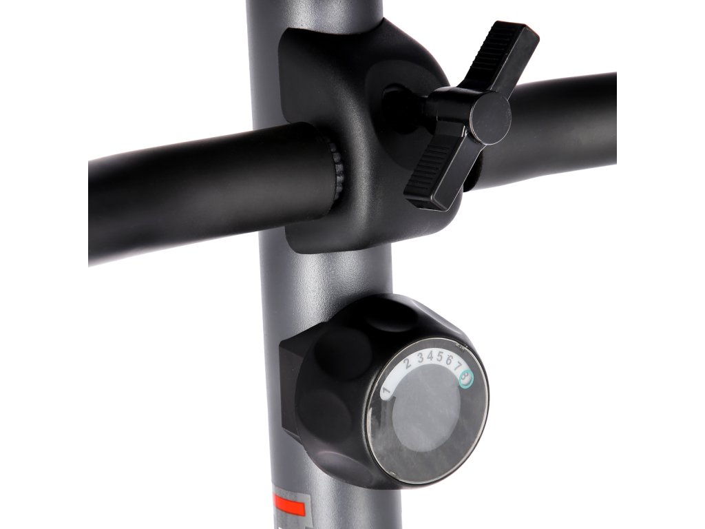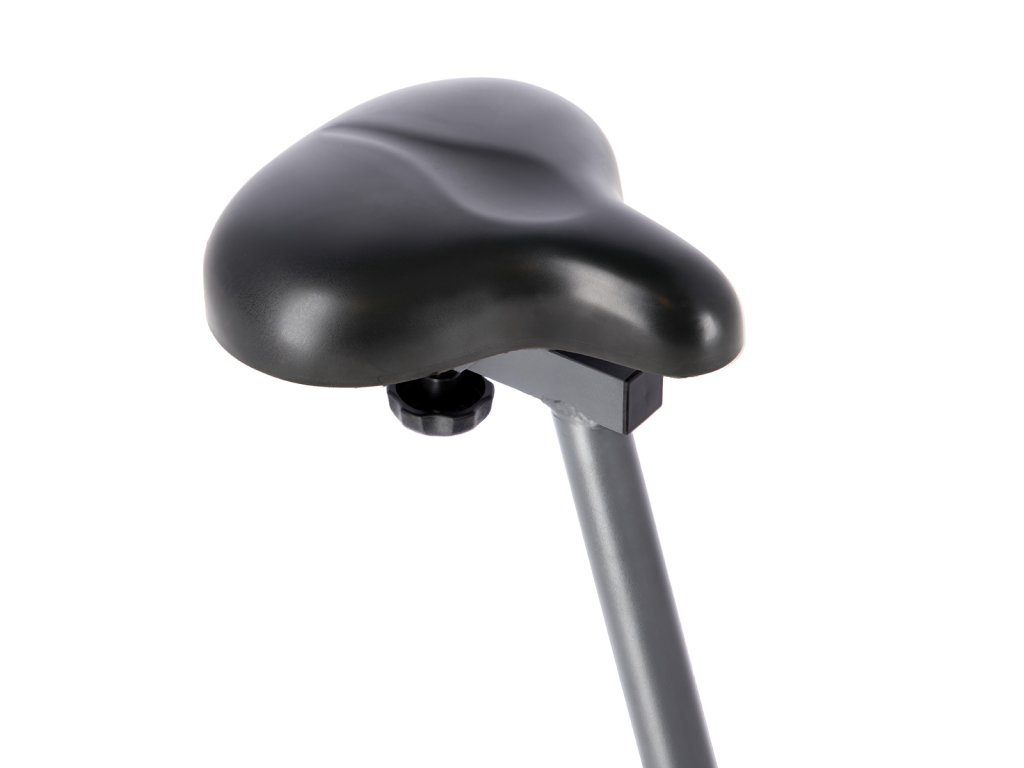 Pohodlné, gélové sedadlo je nastaviteľné ako vertikálne, tak i horizontálne a je vybavené vešiakom na uterák. Pohodlné pedále sú opatrené nastaviteľnými remienkami. Riadidlá idú naklopiť a nájdete na nich elektródy pre meranie tepovej frekvencie.
