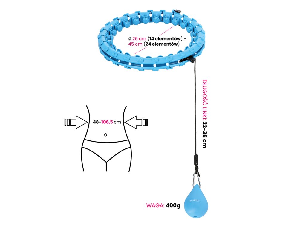 HMS HHW01 je obruč s nastaviteľnou dĺžkou, masážnymi výstupkami a rotačným závažím.