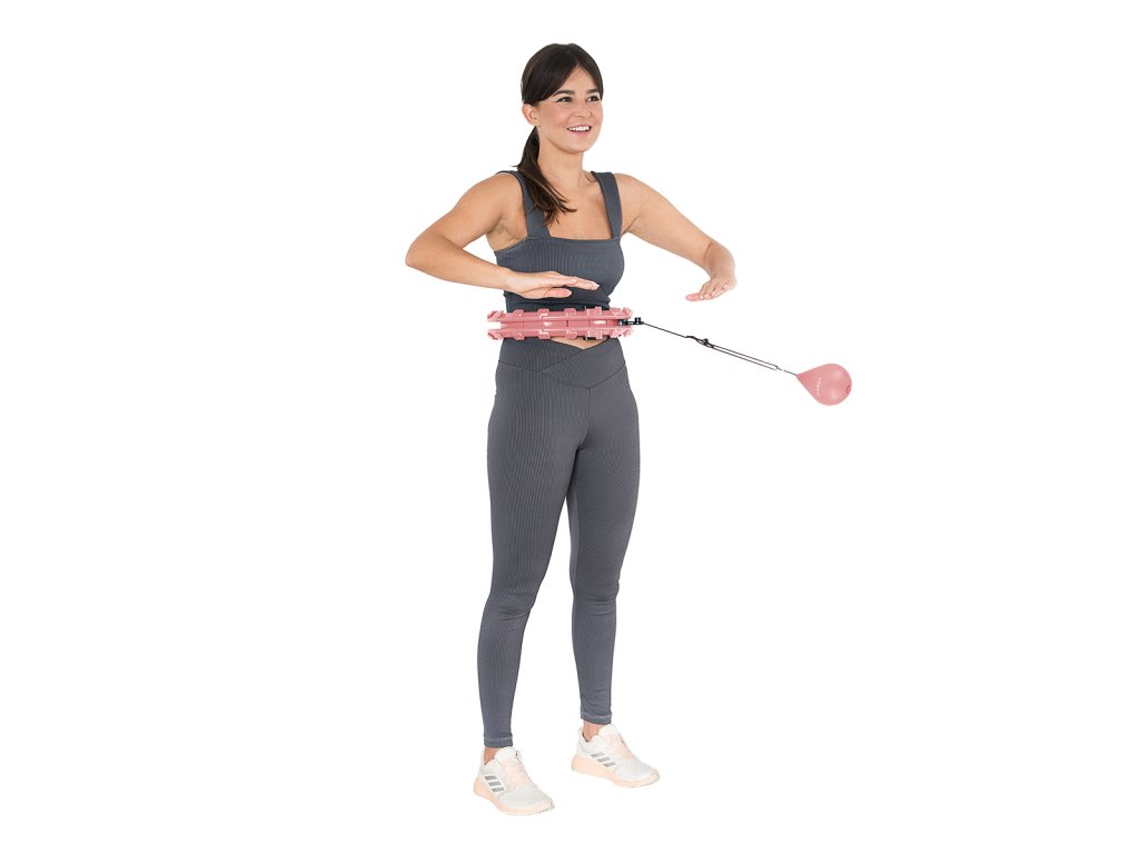 Dĺžka obruče sa nastavuje podľa obvodu pása tak, aby bola dostatočne voľná, ale zároveň neprepadávala cez boky. Po nastavení dĺžky sa obruč uzamkne pomocou spojovacieho dielu, ktorý je vybavený páčkami na ovládanie zámku. Potom závažie "hodíme" smerom, ktorým budeme krútiť bokmi, a začneme s tréningom. Obruč HHW01 je z vnútornej strany vybavená masážnymi klobúčikmi s pružinami, ktoré tlmia vibrácie z pohybujúcej sa kotvy a zároveň príjemne masírujú oblasť pása. Intenzitu cvičenia ovplyvňuje dĺžka šnúry a rýchlosť, akou krútime bokmi.