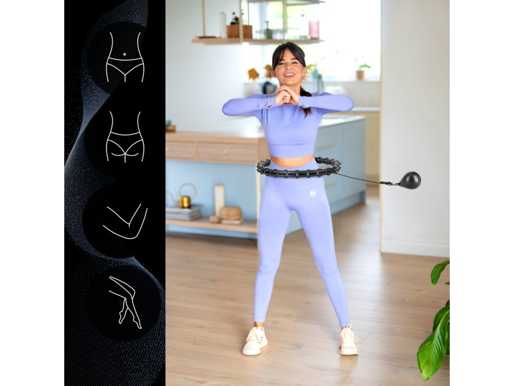 Dĺžka obruče sa nastavuje podľa obvodu pása tak, aby bola dostatočne voľná, ale zároveň neprepadávala cez boky. Záťaž potom "hodíme" v smere, ktorým sa chystáme vytočiť boky a začať cvičiť. Obruč HHW02 je z vnútornej strany vybavená masážnymi platňami, ktoré príjemne masírujú oblasť pása. Masírovanie oblasti pása podporuje prietok krvi a pomáha redukovať tukové tkanivo. Intenzitu cvičenia ovplyvňuje dĺžka šnúry a rýchlosť, akou sa boky krútia.