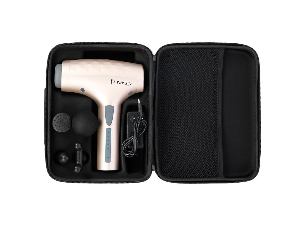 Masážna pištoľ HMS PDM3134I je ideálnym nástrojom na hĺbkovú masáž svalov celého tela. Tento masážny prístroj nájde uplatnenie u športovcov, ľudí so sedavým spôsobom života alebo napríklad u fyzioterapeutov. Model PDM3134I dostanete v elegantnom čiernom puzdre spolu so štyrmi nástavcami, napájacím adaptérom a návodom na použitie.