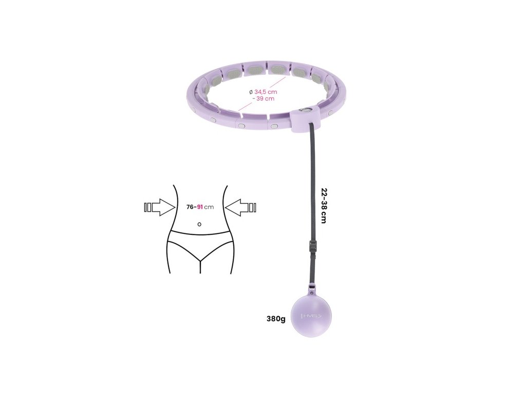 HMS HHW09 je obruč s nastaviteľnou dĺžkou, masážnymi koncovkami a rotačným závažím.