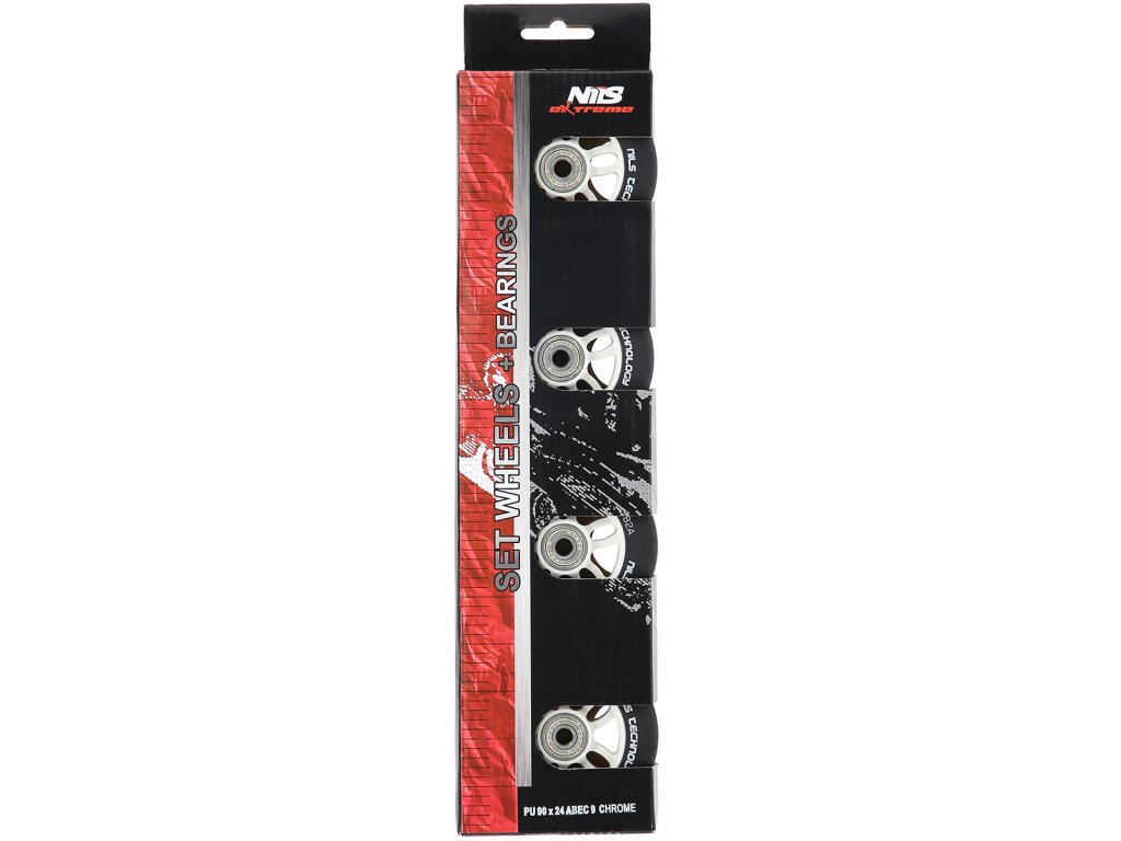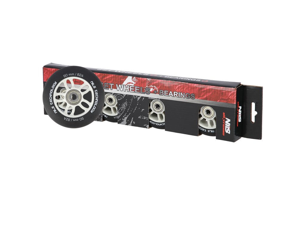 Matné kolieska NILS Extreme PU 90x24 82A s ložiskami ABEC 9, čierne, 4 ks