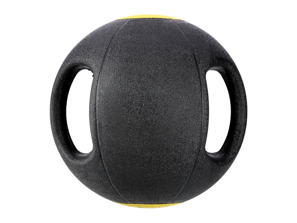 Medicinbal HMS NKU05 je vyrobený z hrubej a pevnej gumy vyplnené pieskom. Vďaka úchytom ide o kombináciu medicinbalu a činky.
