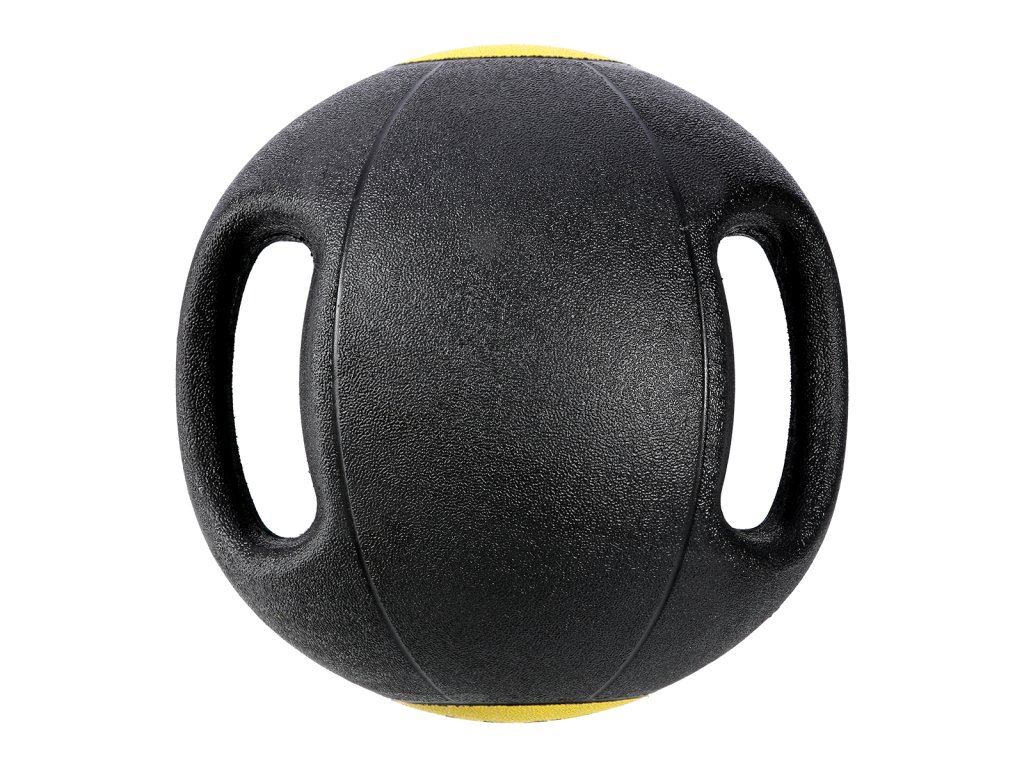 Medicinbal HMS NKU10 je vyrobený z hrubej a pevnej gumy vyplnené pieskom. Vďaka úchytom ide o kombináciu medicinbalu a činky.