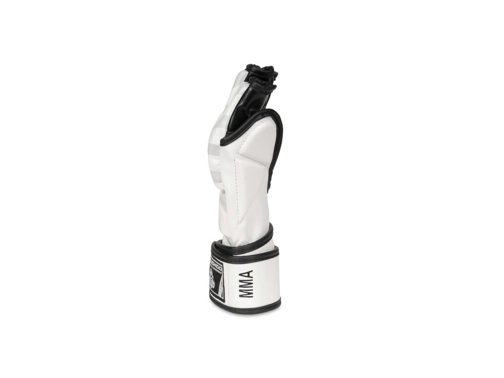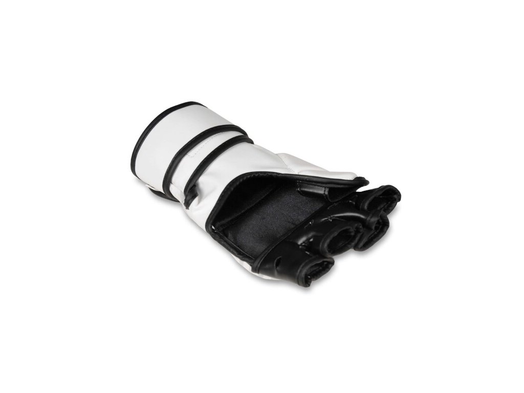 Rukavice DBX BUSHIDO E1v7 na MMA sú vyrobené zo zosilnenej syntetickej kože so zvýšenou pružnosťou a vyplnené penou. Vďaka otvorenej vnútornej strane vám rukavice umožňujú zachovať úchop a ruka dokonale vetrá. Okrem toho je rukavica vybavená ochranným prekrytím chrbta palca a dlhým, širokým pásikom na zápästie na stiahnutie zápästia, aby sa minimalizovalo potenciálne riziko zranenia. Vnútorná strana je podšitá hladkým materiálom na jednoduché obliekanie a vyzliekanie aj počas náročného tréningu. Anatomický tvar rukavíc v kombinácii so zvýšenou pružnosťou syntetickej kože zaručuje pohodlné používanie.