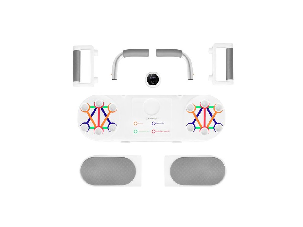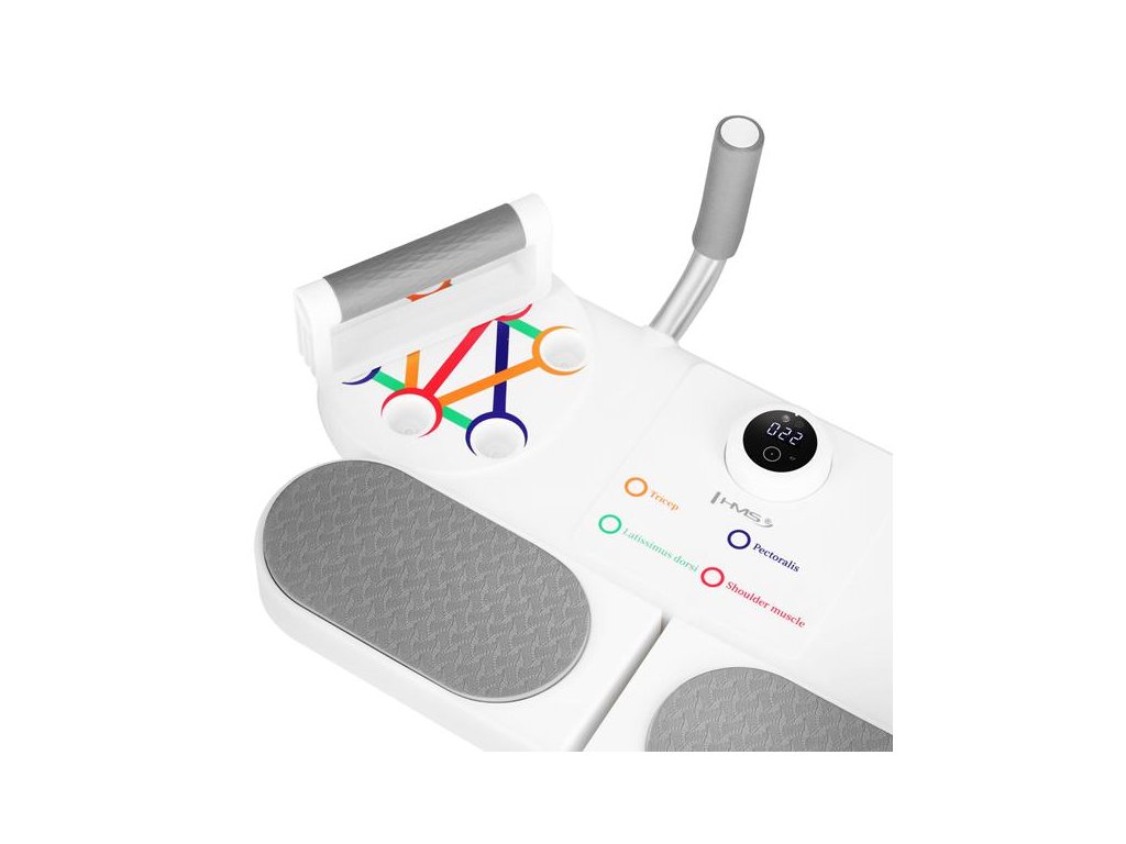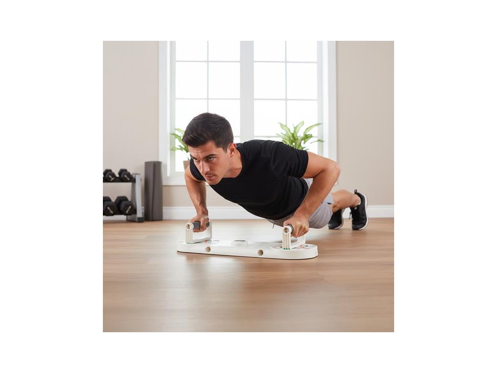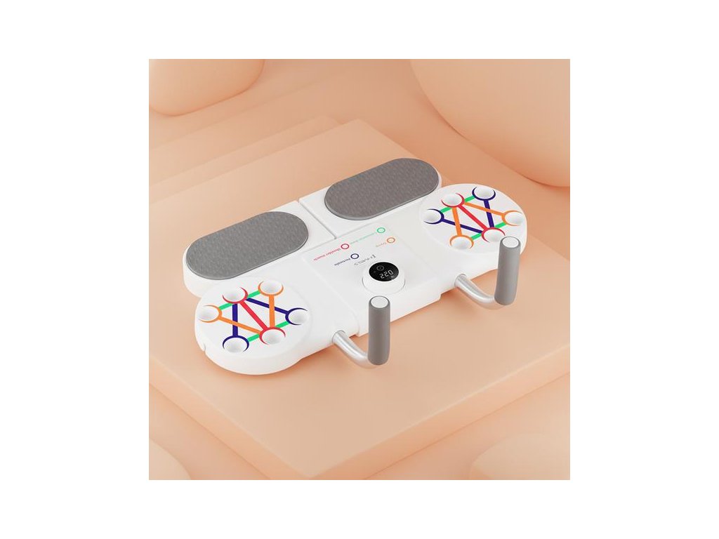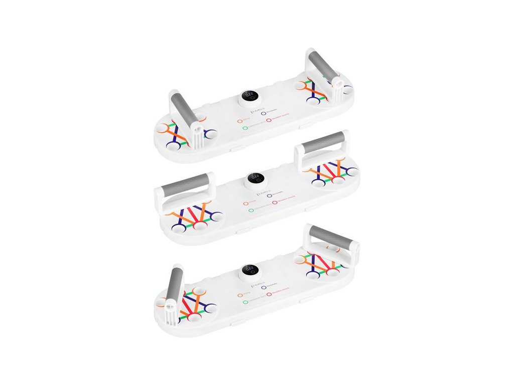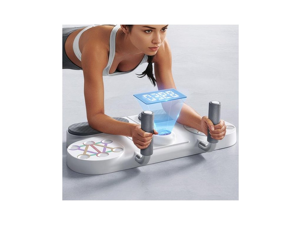 Jeden kompaktný prístroj pre efektívny domáci tréning paží a brucha. DBP03 kombinuje stabilnú dosku na plank, opierky na kľuky s viacerými nastaveniami a inteligentný počítač s optickým (IR) senzorom priblíženia, ktorý automaticky počíta opakovania.