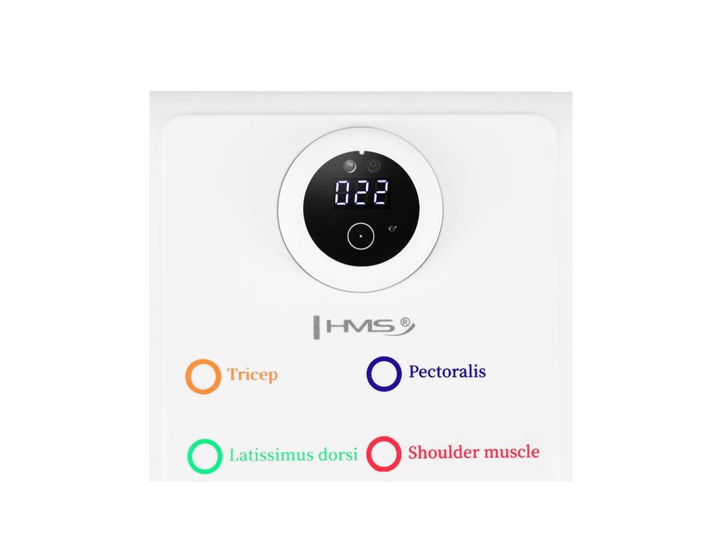 - Inteligentné počítadlo opakovaní – optický (IR) senzor deteguje každý pohyb nadol a automaticky počíta opakovania; displej zobrazuje výsledok série.