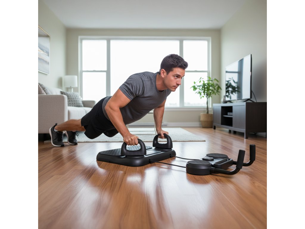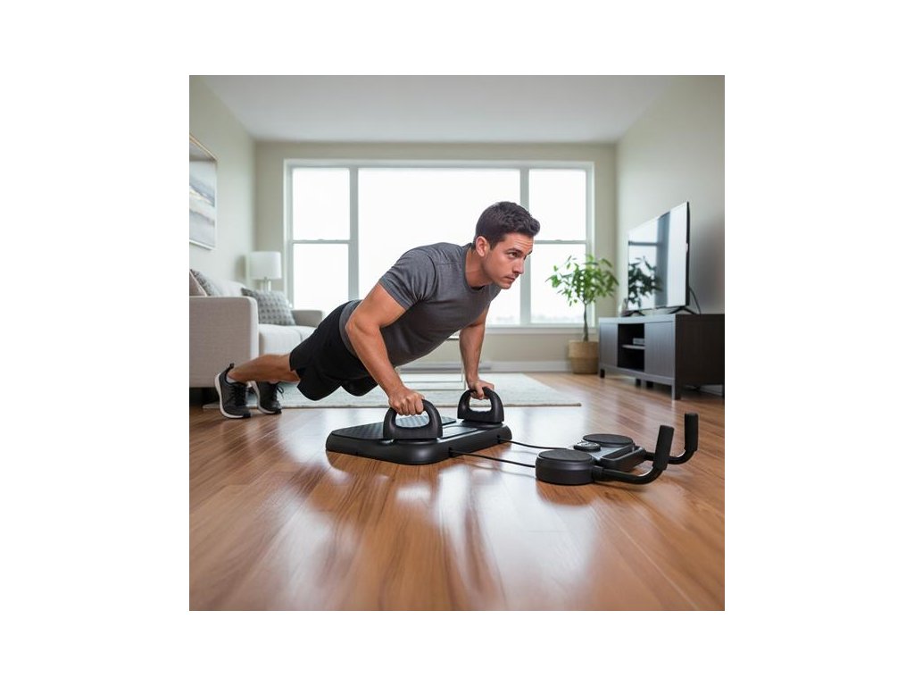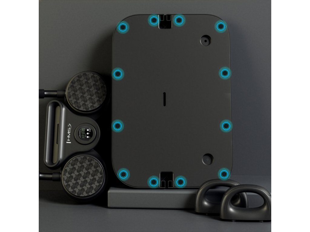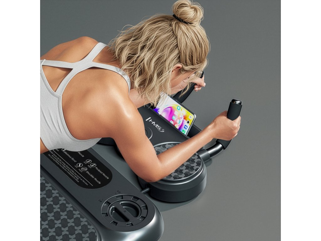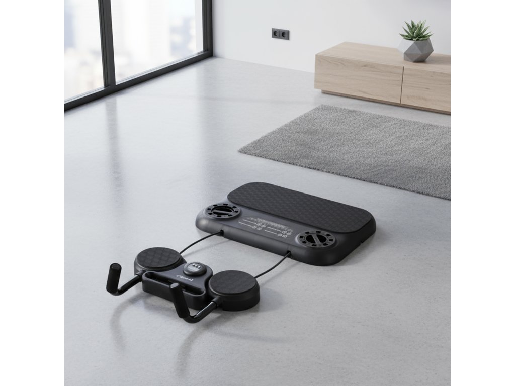 Jedna platforma, desiatky cvikov. DBP01 spája dosku na plank, opierky na kľuky s rôznymi úchopmi a tréning s expandérmi – vďaka tomu doma efektívne posilníš hrudník, ramená, paže, core aj chrbát. Vstavaný displej meria čas a držiak na telefón uľahčuje tréning s obľúbenou aplikáciou.
