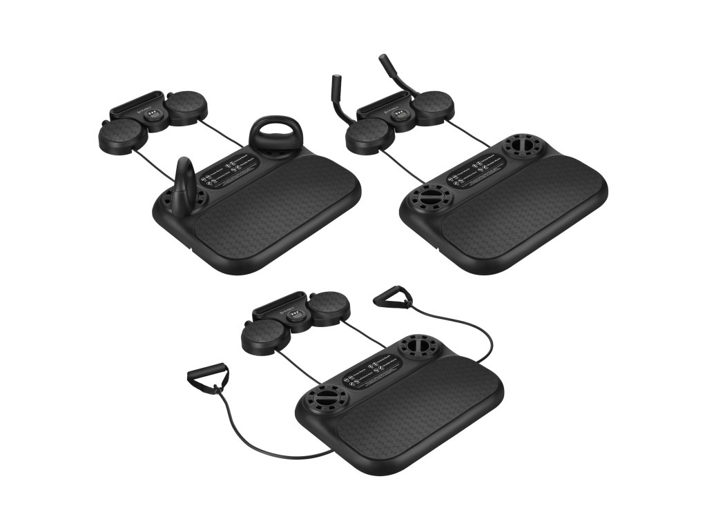 - Tréning celého tela s expandérmi – odporové gumy spojené so základňou umožnia cviky na biceps, triceps, ramená aj chrbát.