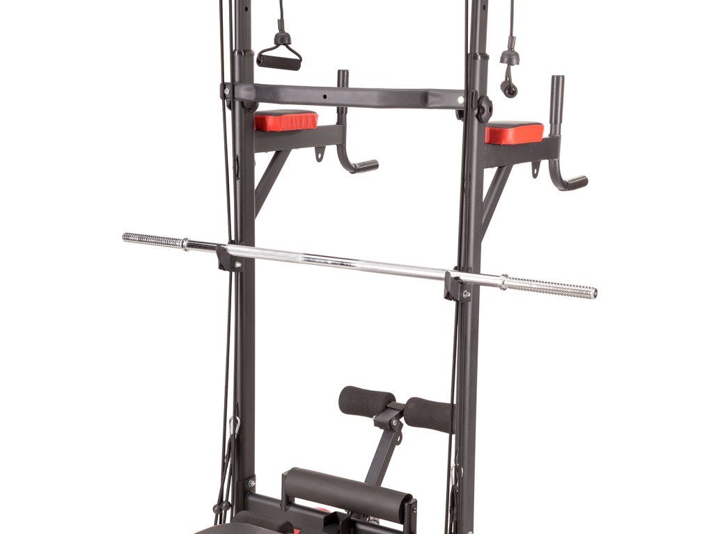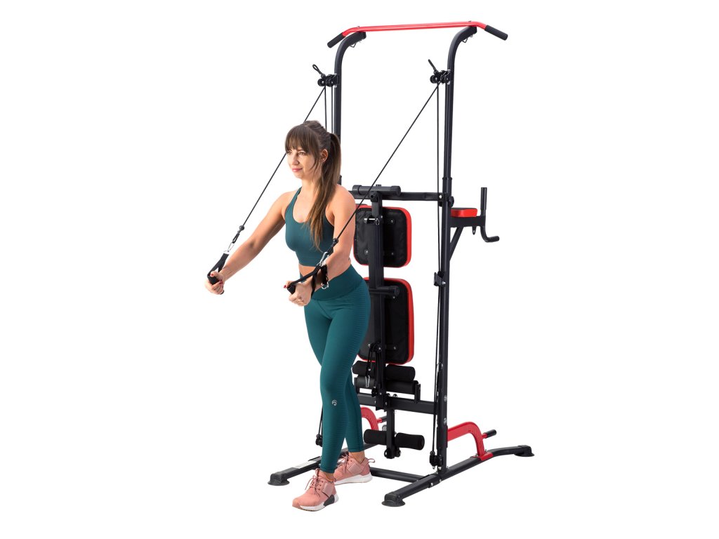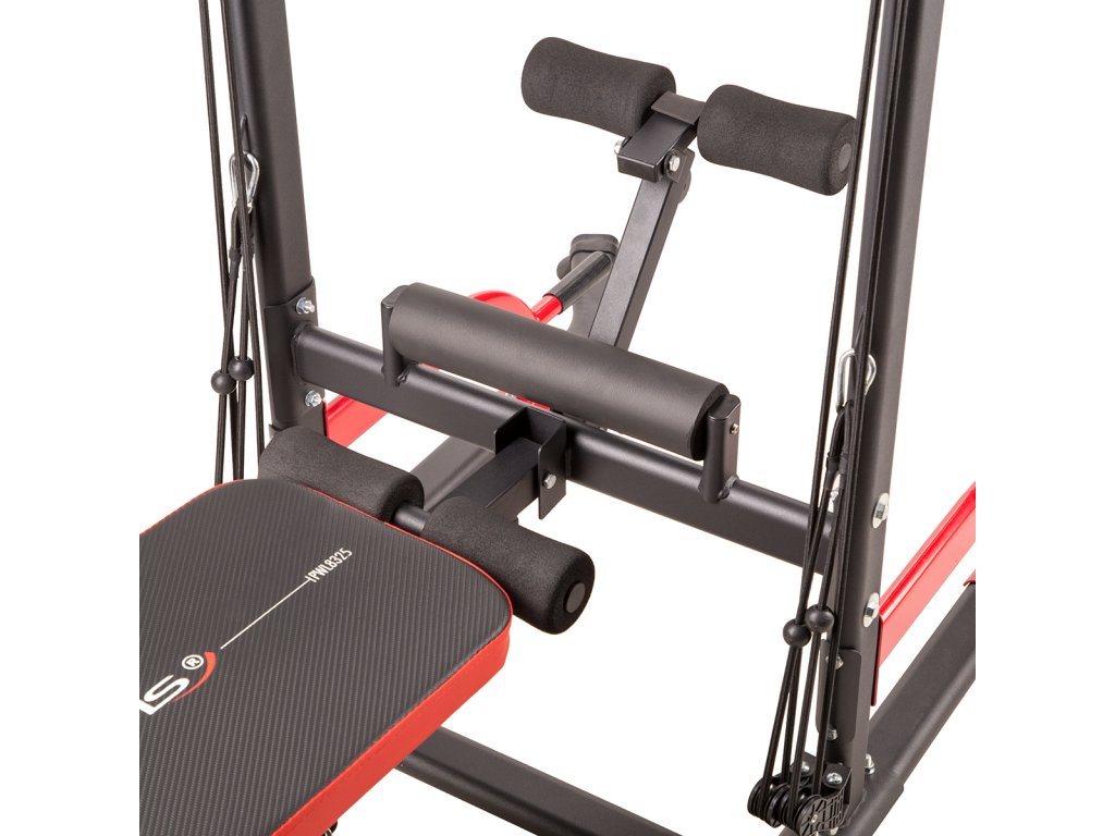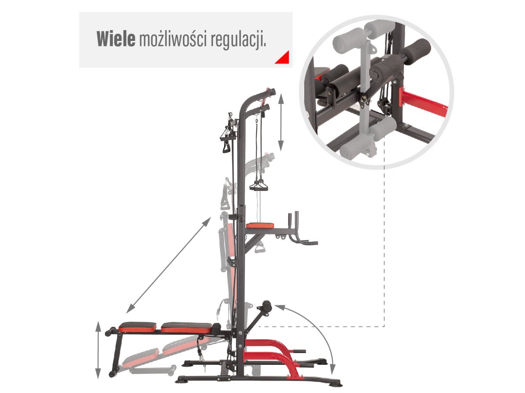 HMS PWL8325 je multifunkčná hrazda s podperami, bradlami, hornou kladkou, dolnou kladkou a nastaviteľnou lavičkou. Umožňuje komplexne precvičiť všetky svalové skupiny hornej časti tela - hrudník, chrbtové svaly, tricepsy a brušné svaly.