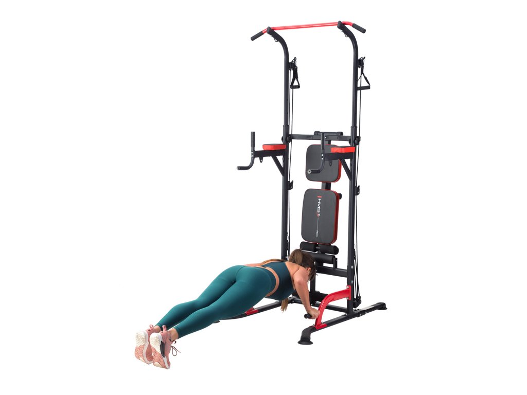 Príťahy na hrazde a kliky na hrazde alebo "dipy" sú dva cviky, ktoré veľmi intenzívne rozvíjajú dve skupiny agonistických a antagonistických svalov, t. j. najširšie chrbtové svaly, bicepsy, prsné svaly a tricepsy. Dolné podpery vám umožnia vykonávať hlboké kliky. Vďaka tomu sa svaly pri každom pohybe oveľa viac natiahnu, čo vedie k ich rýchlejšiemu rastu. S PWL8325 je možné trénovať aj brušné svaly vďaka naklonenej lavici a opierkam na ruky umiestneným na bradlách. Lavicu možno nastaviť aj do vodorovnej polohy, čo umožňuje vykonávať cviky s činkami. Integrovaný držiak na veľkú činku vám umožní trénovať Bench press, súčasťou balenia je aj 120 cm dlhá os s priemerom 24 milimetrov. Horná a dolná kladka sa skladá z dvoch párov gumových šnúr, ktoré sa dajú spojiť pomocou karabín a napnúť pomocou úchytov na hlavnom ráme. Všetky komponenty robia z tohto výrobku HMS skutočne multifunkčné zariadenie.