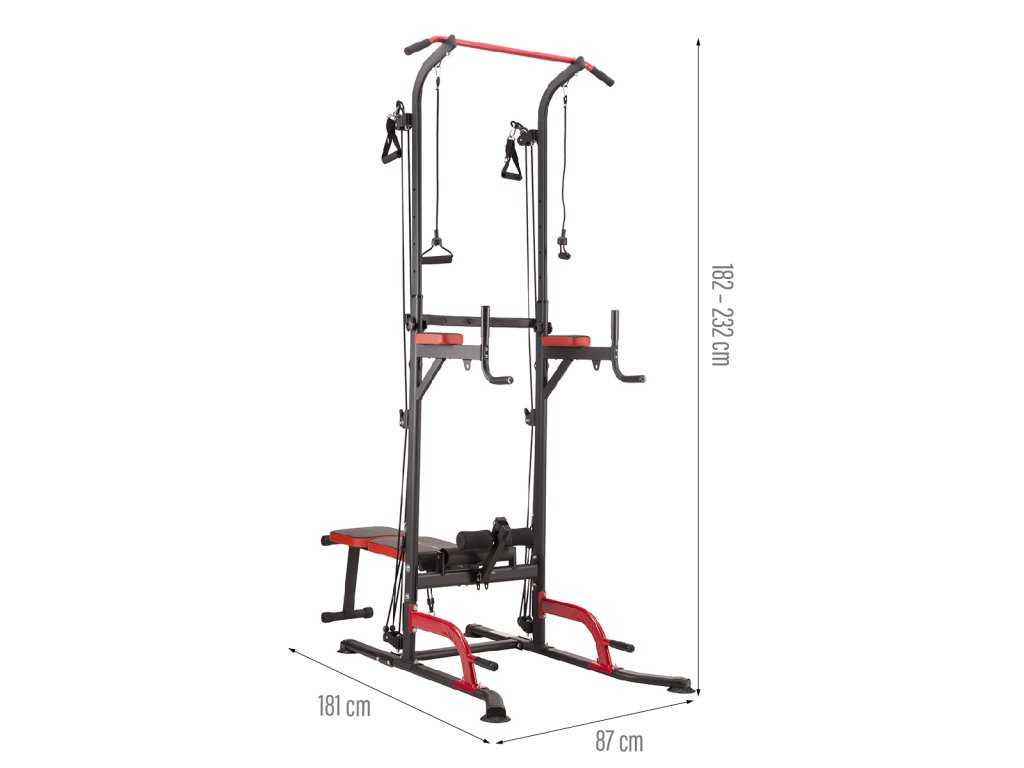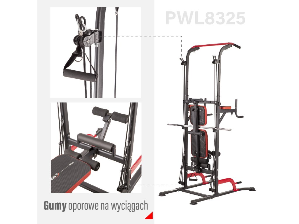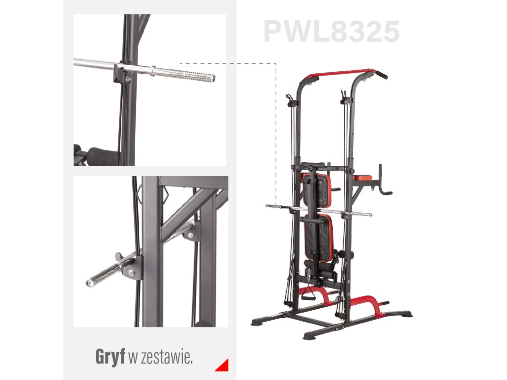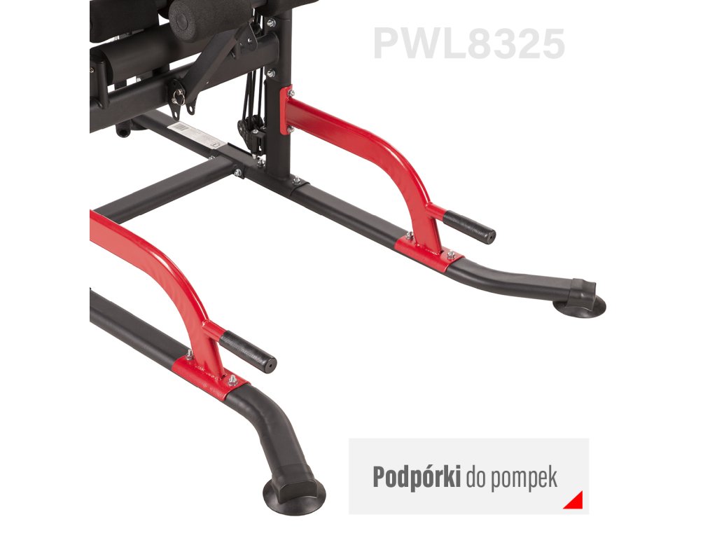PWL8325 je vyrobený z najkvalitnejších materiálov. Všetky rukoväte sú potiahnuté protišmykovým materiálom, ktorý zaručuje pevný úchop počas cvičenia. Výšku hrazdy možno nastaviť až do 232 cm. Lavica sa dá zložiť, aby sa ušetrilo miesto.