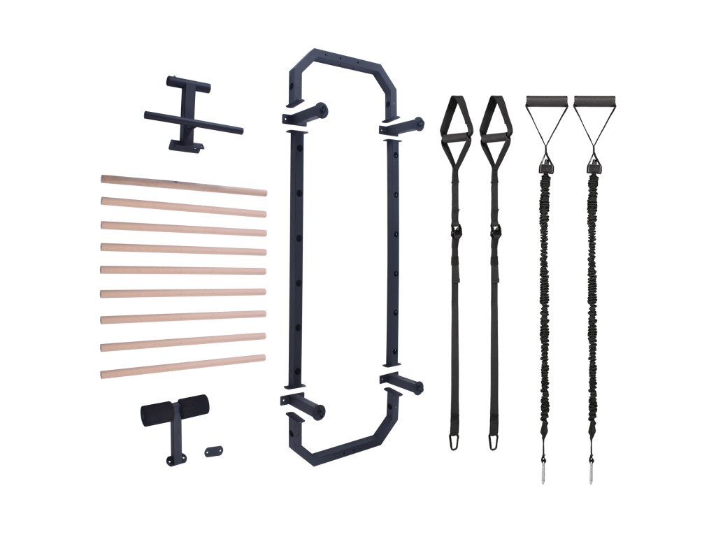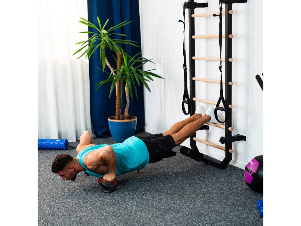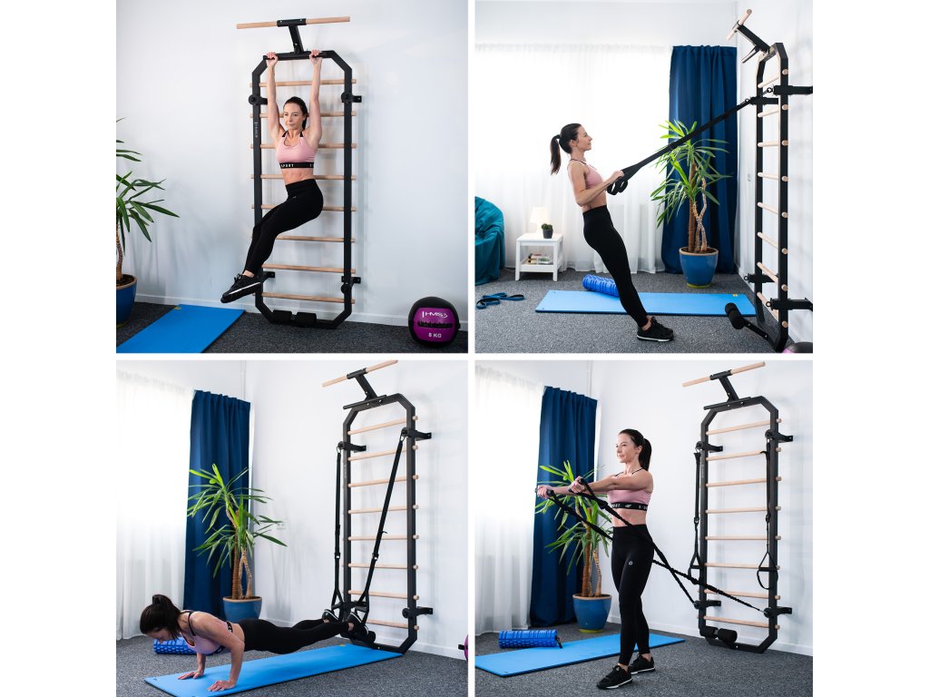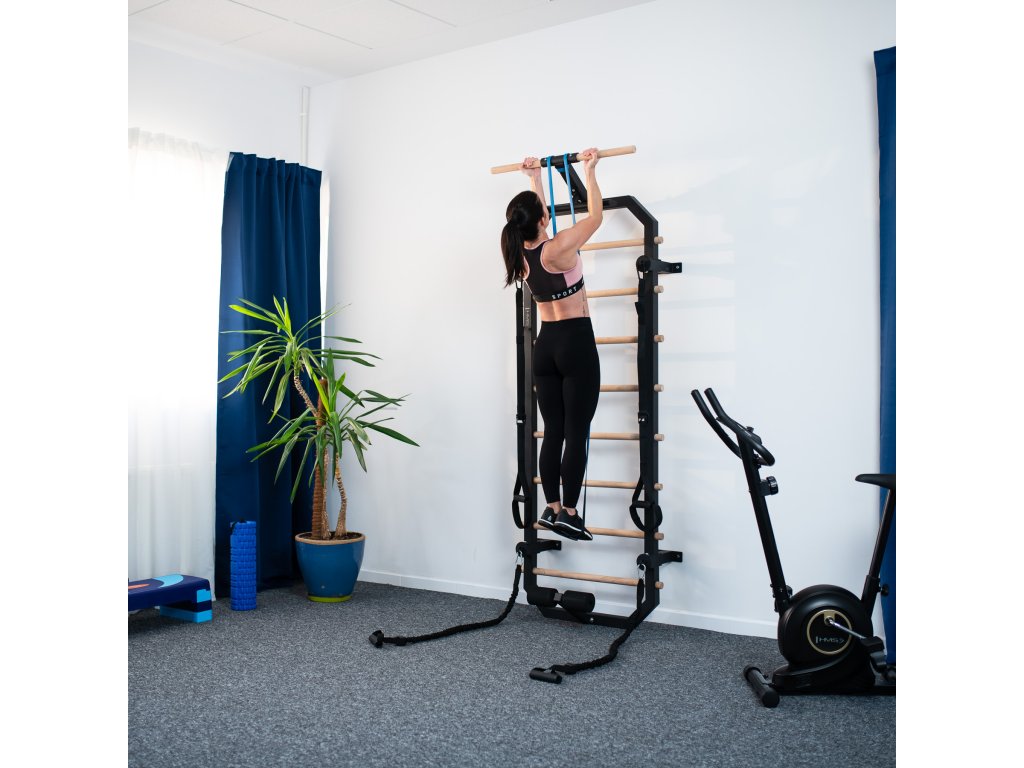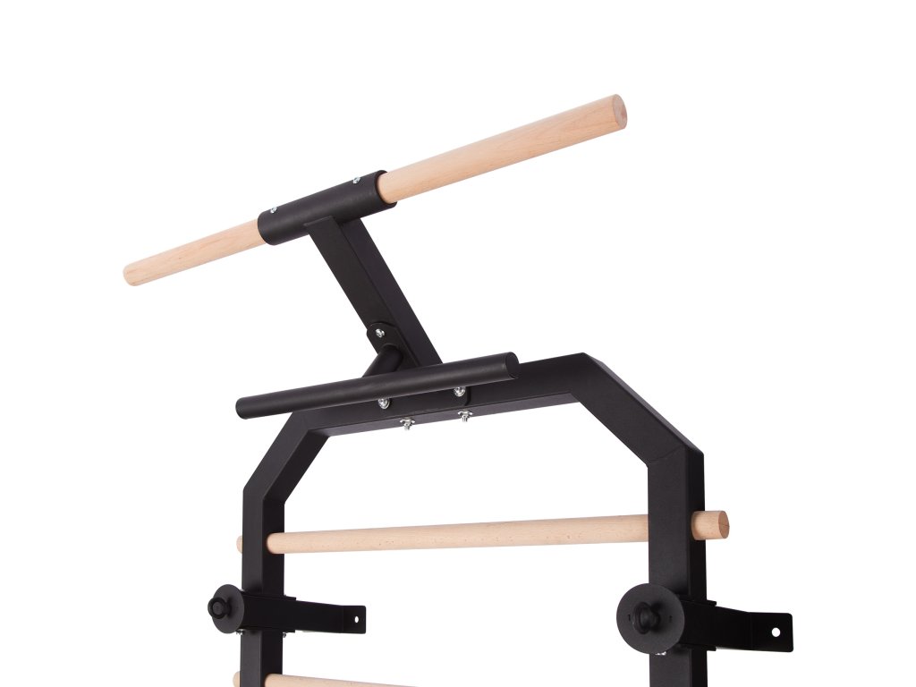 Priečky z bukového dreva sú pri inštalácii do rebríka zaistené skrutkou zo zadnej strany konštrukcie, takže zostávajú pevne na mieste a nekrútia sa. V hornej časti rebríkov sa nachádza 80 cm široká hrazda a kovová "polovičná hrazda", ktorú možno použiť napríklad na inštaláciu popruhov alebo expandérov, tie možno tiež pripevniť k oceľovým okám na 4 vzperách. V spodnej časti sa nachádza zarážka na nohy na tréning sed-ľah. Pre maximálne pohodlie sú zarážky vybavené penovými valčekmi.