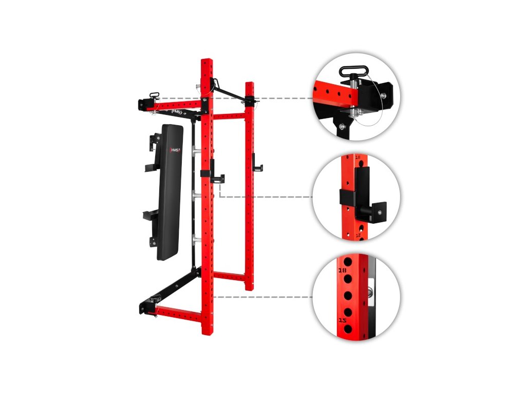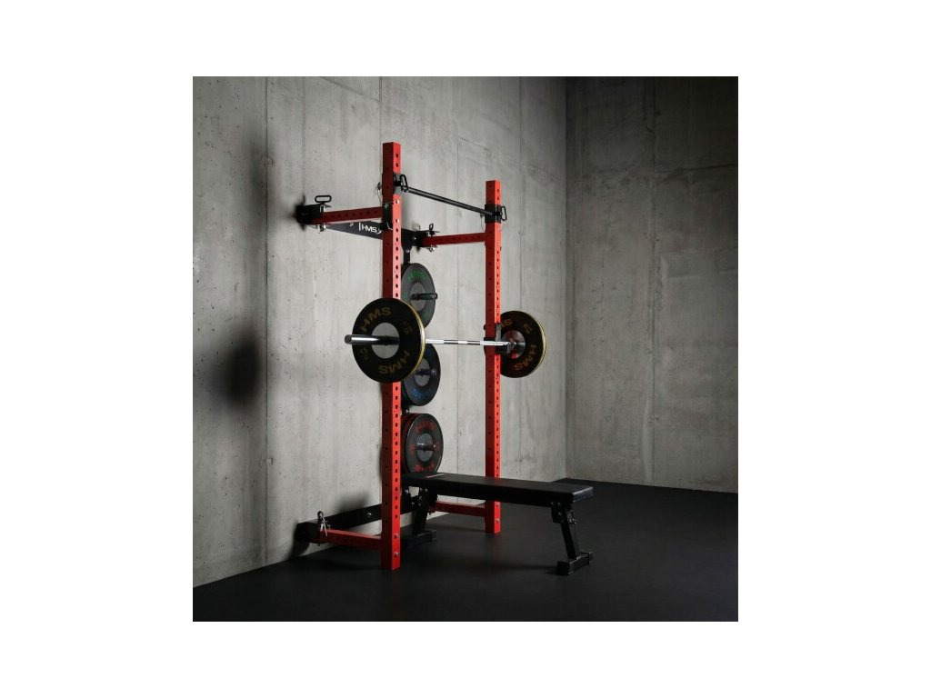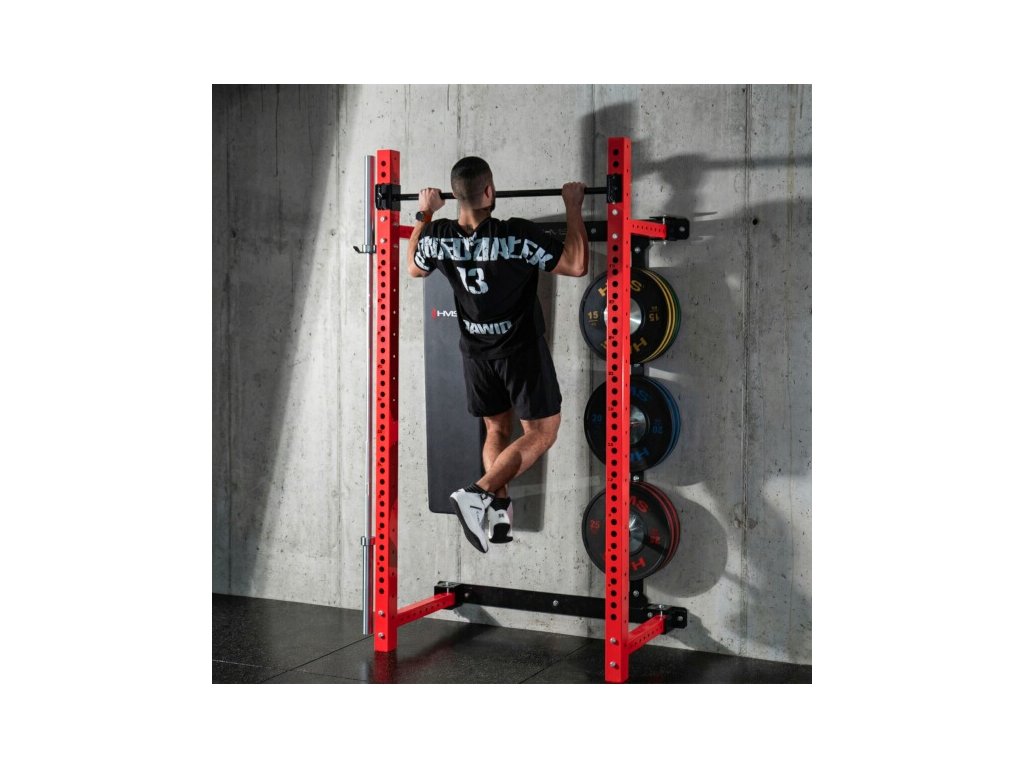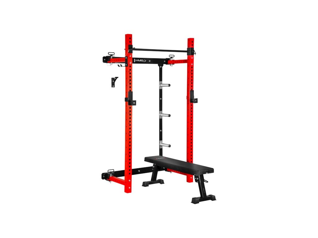 Multifunkčný skladací posilňovací stojan - Power Rack HMS KLT34 červený