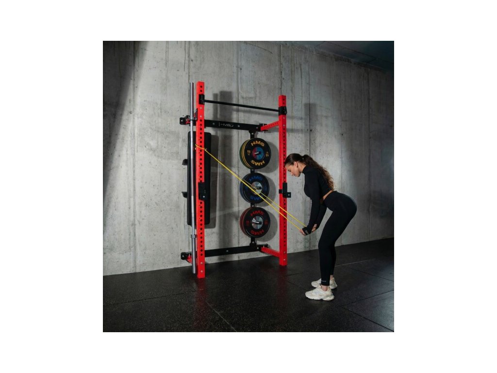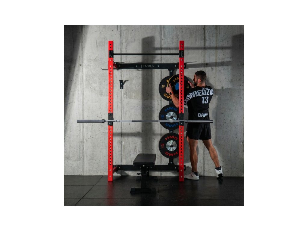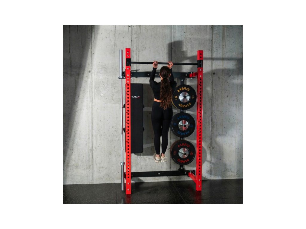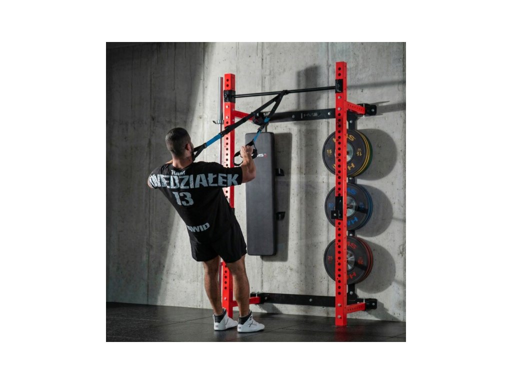 Multifunkčný skladací posilňovací stojan - Power Rack HMS KLT34 červený