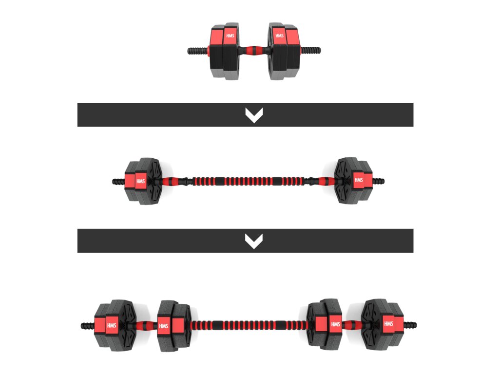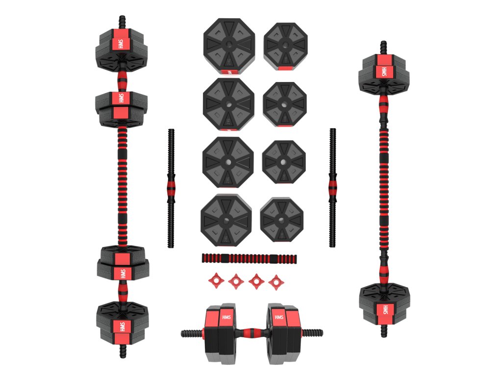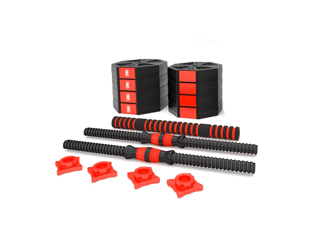 Kompletná nakladacia sada dvoch jednoručných a jednej obojručné činky o celkovej hmotnosti 15 kilogramov, to je HMS SGC15. Nakladacie činky patrí ku klasickému vybaveniu každej domácej posilňovne.