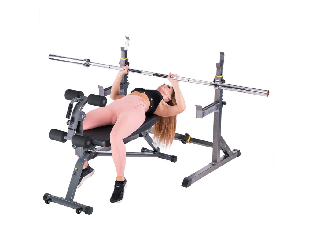 HMS Premium L8022 je rovná, nastaviteľná lavička so zarážkami a expandérmi, ktorá nájde ideálne využitie pri tréningu s činkami.