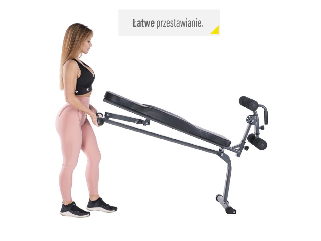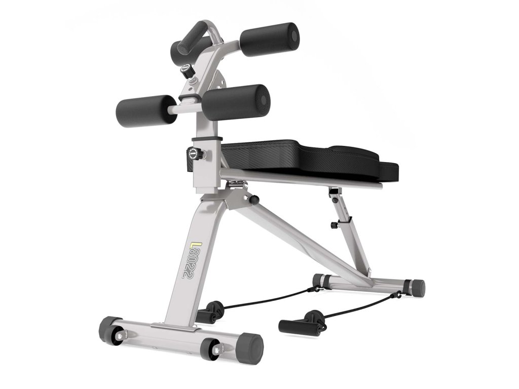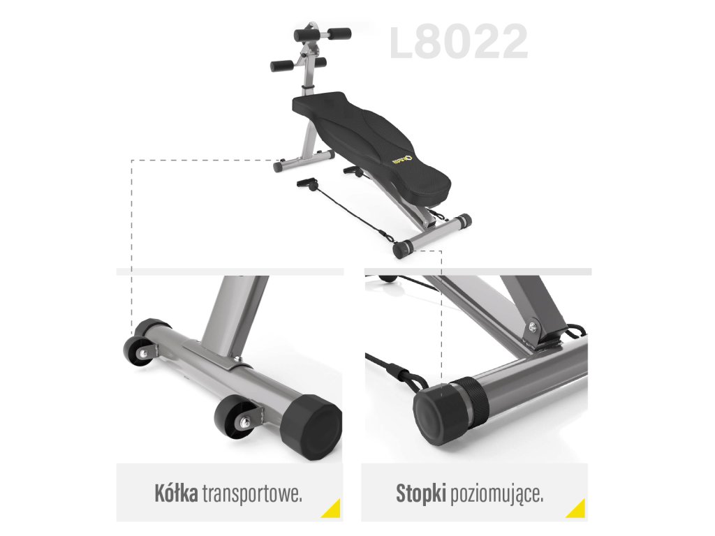 Chrbtová opierka je nastaviteľná do 5 polôh (1 rovná a 4 s negatívnym sklonom). Operadlo v horizontálnej polohe je ideálne na vykonávanie väčšiny cvikov s činkami, ak je operadlo nastavené do záporného uhla, potom získame šikmú lavicu na posilňovanie brucha, na tento účel je L8022 vybavená nastaviteľným, výsuvným rámom so zarážkami, ktorý je nastaviteľný v 3 polohách a 4 uhloch, zarážka na nohy je nastaviteľná do 3 vzdialeností. Rám je teda hlavnou výhodou lavice a umožňuje presné nastavenie pre každú postavu, takže tréning sed-ľahov je bezpečný a pohodlný.