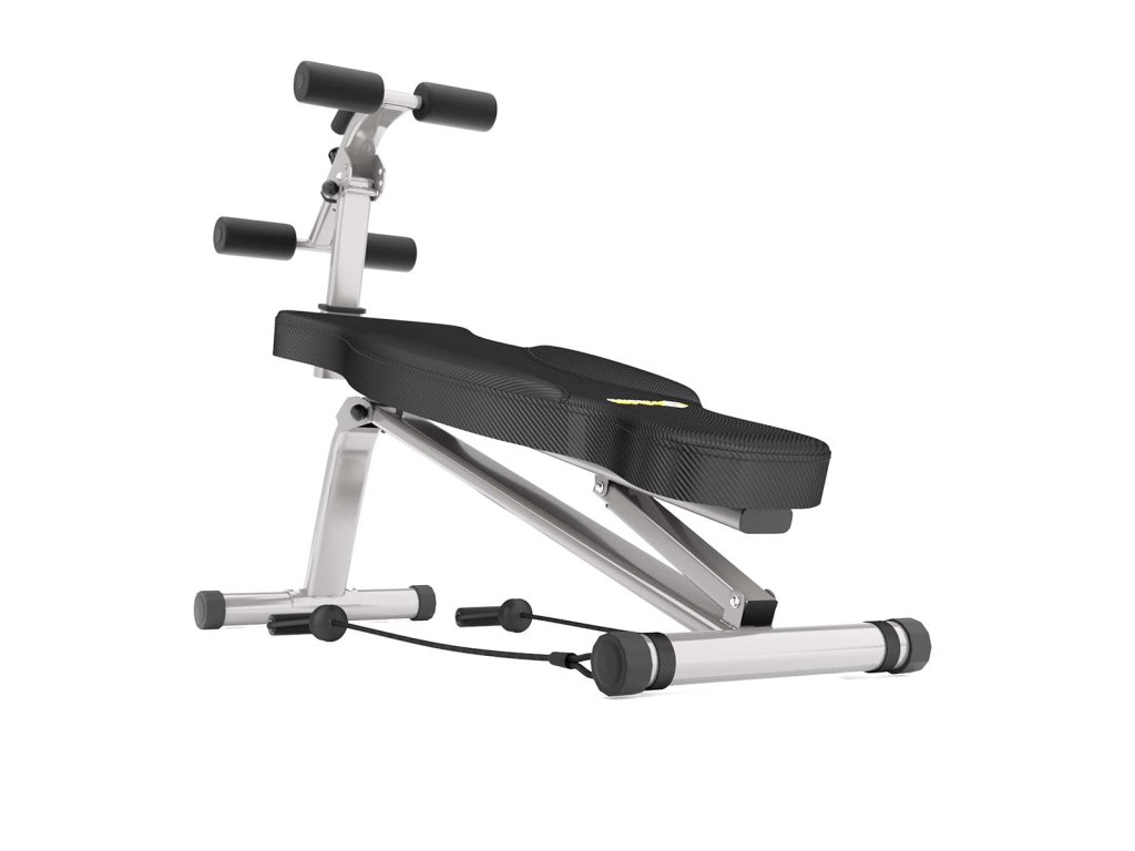 Chrbtová opierka je vyrobená z hrubej dosky potiahnutej vysokou vrstvou peny pre maximálne pohodlie počas tréningu. Ergonomické polstrovanie je vyrobené zo syntetickej kože uhlíkového vzhľadu, je odolné voči potu a tiež zabraňuje "pošmyknutiu" počas tréningu.