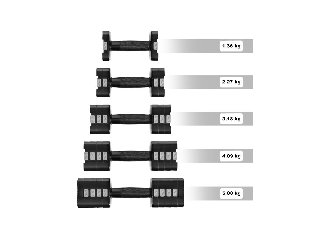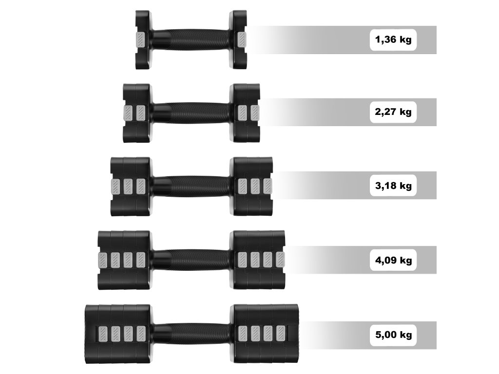 - Rozsah 1,36–5 kg na kus – ideálne pre kardio, fitness, silový tréning aj rehabilitáciu.