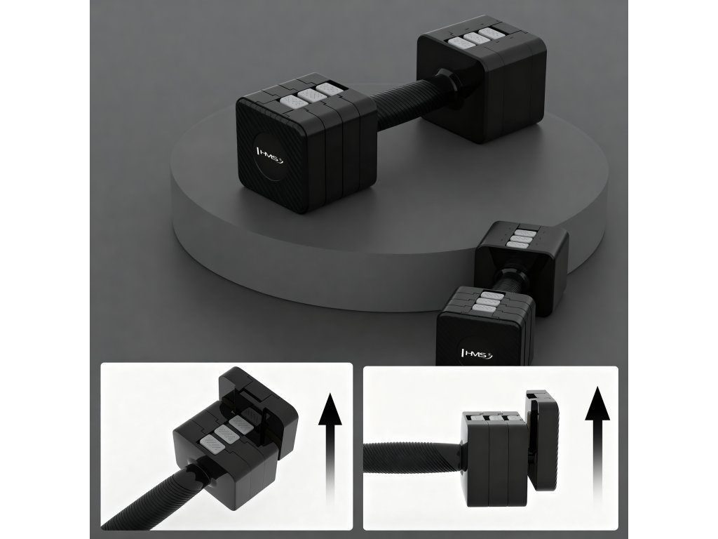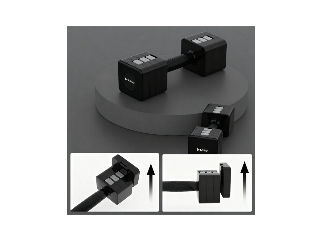 Rozhýb svoj tréning s HL02 HMS – to sú nastaviteľné jednoručné činky 2 × 5 kg s bleskovou, niekoľkosekundovou zmenou hmotnosti, protišmykovou rukoväťou a stabilným štvorcovým tvarom. Jedna sada nahrádza päť párov klasických činiek – ušetríš miesto, čas aj peniaze.