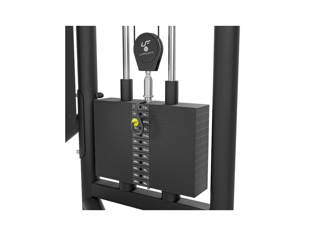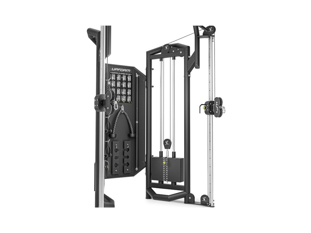 UpForm UF-019 má 2 samostatné kladky nastaviteľné do 18 výškových úrovní, ktoré sú očíslované na rýchle a symetrické nastavenie oboch kladiek. Zmena výšky sa vykonáva vytiahnutím pružinového čapu a posunutím kladky pomocou rukoväte. Samotné kladky sú otočné o 180° pre maximálny rozsah použitia. Každá kladka je spojená oceľovým lankom so zásobníkom závaží z 12 tehál s hmotnosťou 7,5 kilogramu, takže každá strana má k dispozícii 90 kilogramov záťaže. Jednotlivé závažia sú označené na rýchly výber požadovaného zaťaženia v kilogramoch aj librách. Kolík na výber hmotnosti je vyrobený z hliníka a je pripevnený ku skrútenému káblu, takže nehrozí jeho strata. Na presné nastavenie zaťaženia sú v stanici 2 voľné tehly s hmotnosťou 3,75 kg, ktoré sa položia na prvú tehlu v zásobníku.