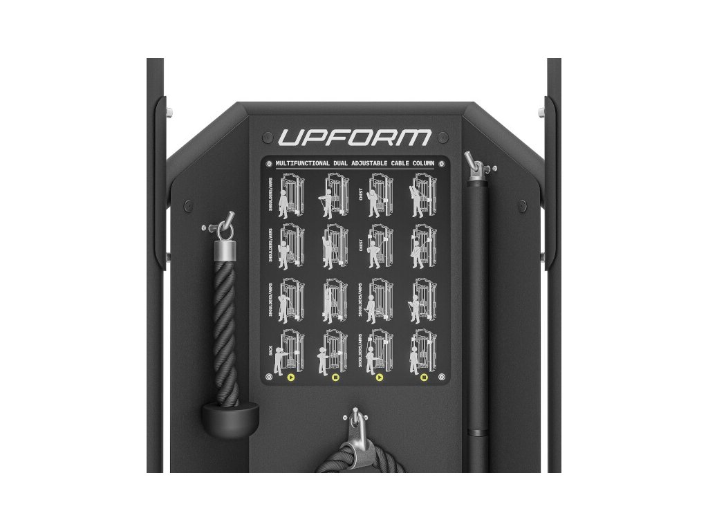 UpForm UF-019 s nastaviteľnými kladkami a hrazdou je profesionálna tréningová veža určená pre náročných používateľov. Vďaka premyslenému dizajnu, veľkosti stohu a okamžitej zmene záťaže je veža ideálna na silový a športový tréning. Stanica je svojím dizajnom určená na použitie v komerčných telocvičniach, fitnescentrách alebo kluboch. Rám je vyrobený z oceľových profilov 100 x 60 x 3 milimetre a oceľových rúrok s profilom 60,3 x 3,2 mm a 76,1 x 3,2 milimetra, ktoré zaručujú vysokú stabilitu konštrukcie a jej odolnosť aj pri tréningu s plne používanou sadou závaží.