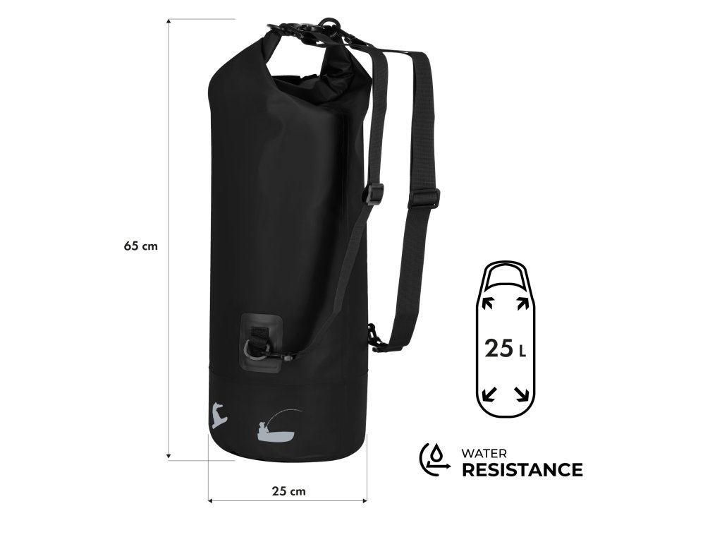 Vak je vyrobený z odolnej zmesi PVC 500D a polyesteru, ktorá chráni obsah pred vlhkosťou, blatom aj nepriaznivými poveternostnými podmienkami. Je to ideálna voľba, ak chcete mať istotu, že vaše oblečenie, elektronika alebo dokumenty zostanú suché aj v extrémnych situáciách.