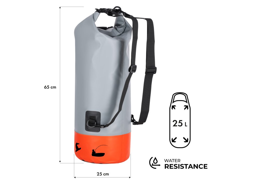Vak je vyrobený z odolnej zmesi PVC 500D a polyesteru, ktorá chráni obsah pred vlhkosťou, blatom aj nepriaznivými poveternostnými podmienkami. Je to ideálna voľba, ak chcete mať istotu, že vaše oblečenie, elektronika alebo dokumenty zostanú suché aj v extrémnych situáciách.