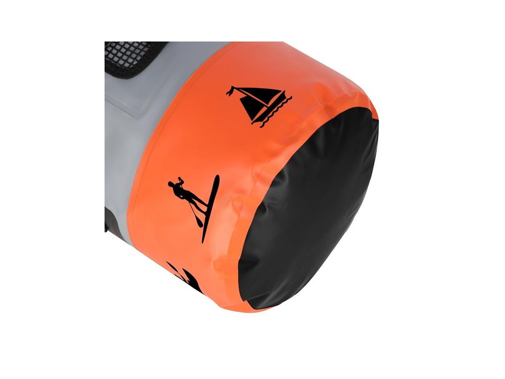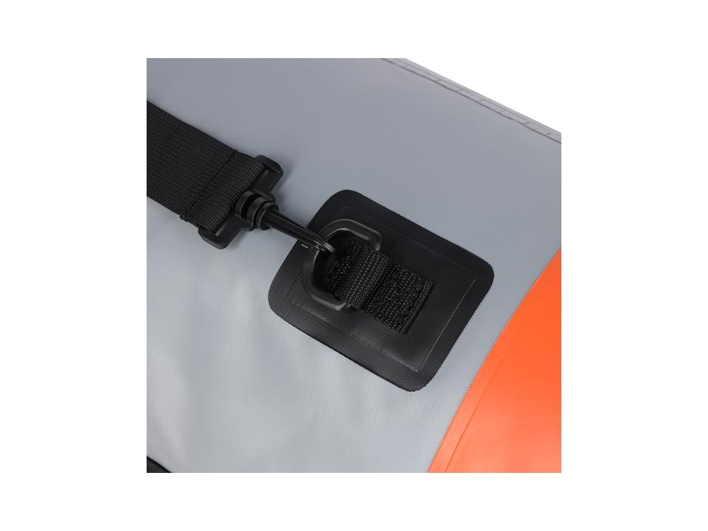 Hlavná komora sa uzatvára zrolovaním a zapnutím prackou, čo zvyšuje tesnosť a chráni obsah pred zaliatím vodou. Nastaviteľné ramenné popruhy sú odnímateľné, takže vak môžete nosiť na chrbte ako batoh alebo v ruke, ako klasickú tašku.