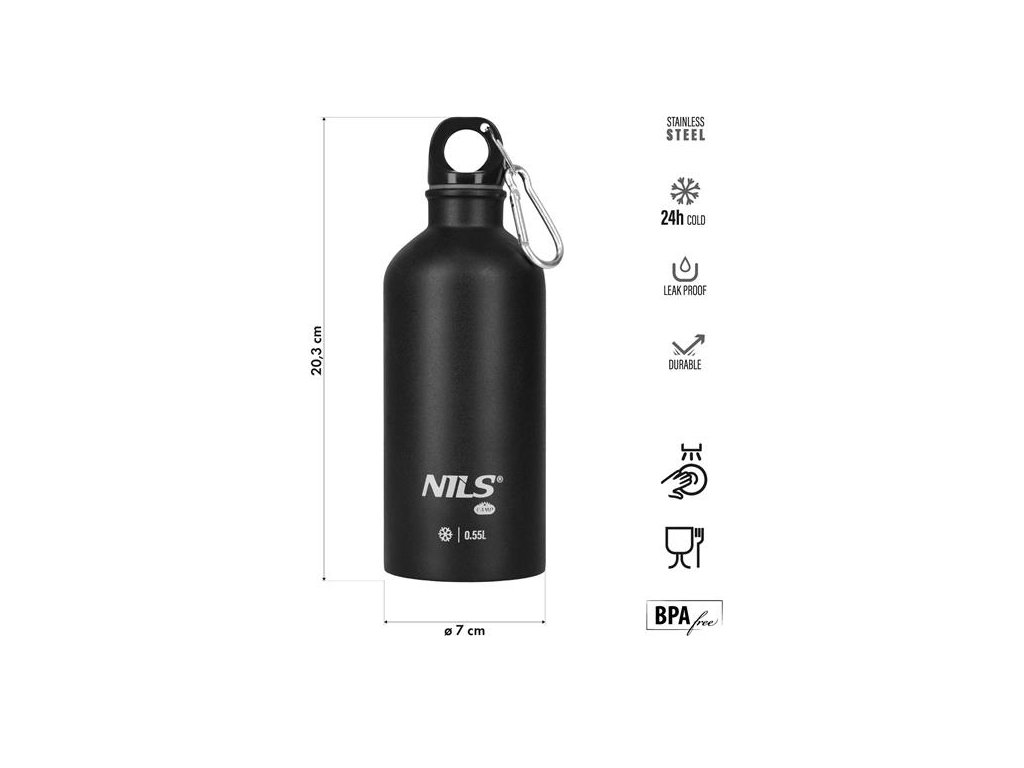Nerezová turistická fľaša NILS Camp NC3801 čierna 500 ml