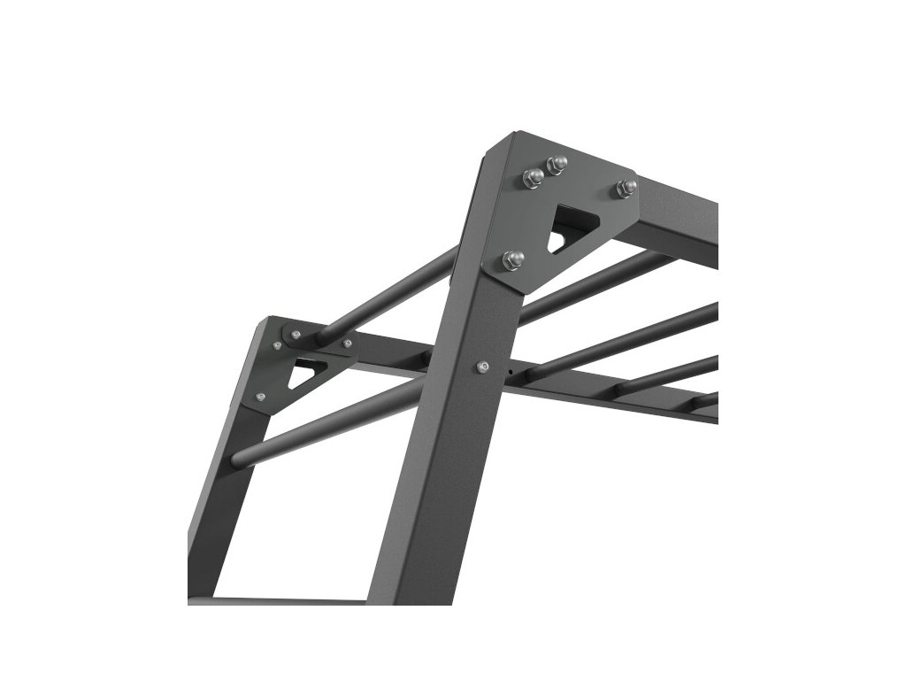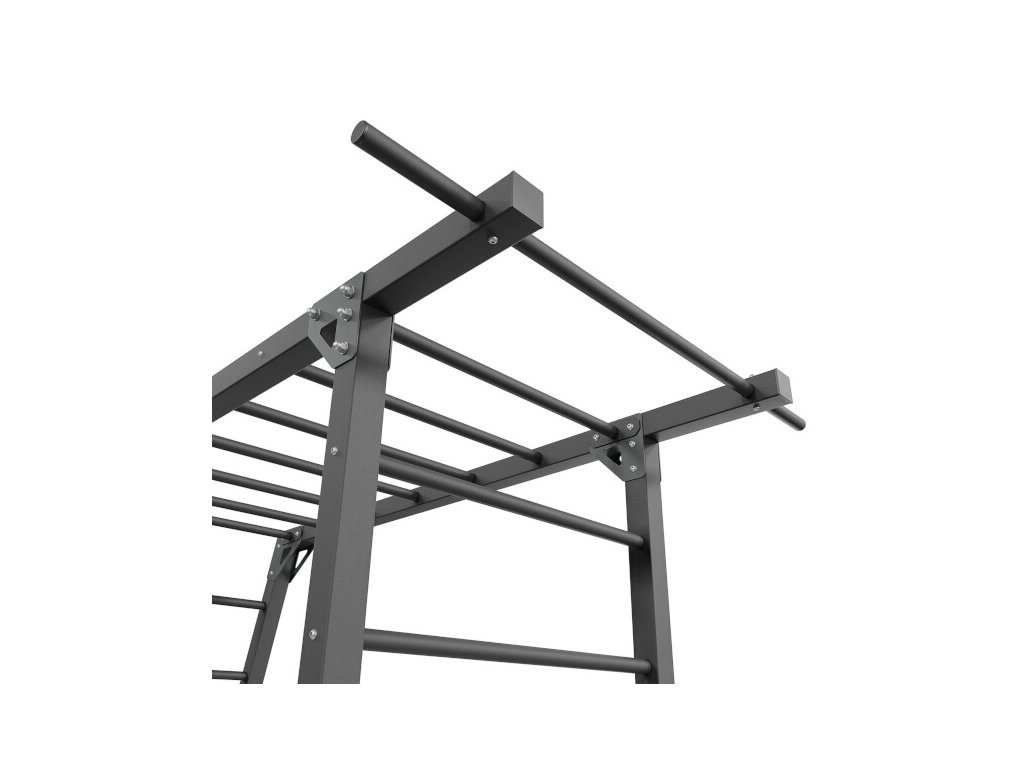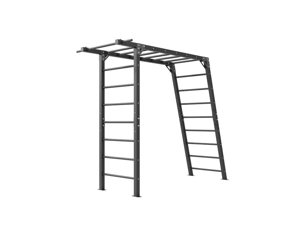 Rebriny sú vo zvislej polohe a majú výšku 210 centimetrov a 8 priečok. Priečky sú od seba vo vzdialenosti 26 cm a majú priemer 3 cm. V úrovni poslednej priečky sa nachádza predsunutá hrazda so šírkou 121 cm. Táto strana konštrukcie je možné využiť na širokú škálu cvikov, možno na ňu pripevniť aj tréningové gumy alebo závesný posilňovací systém. Z druhej strany konštrukcie sa nachádza šikmý a horizontálny rebrík, ktorý nájde ideálne využitie ako preliezačka pre deti.