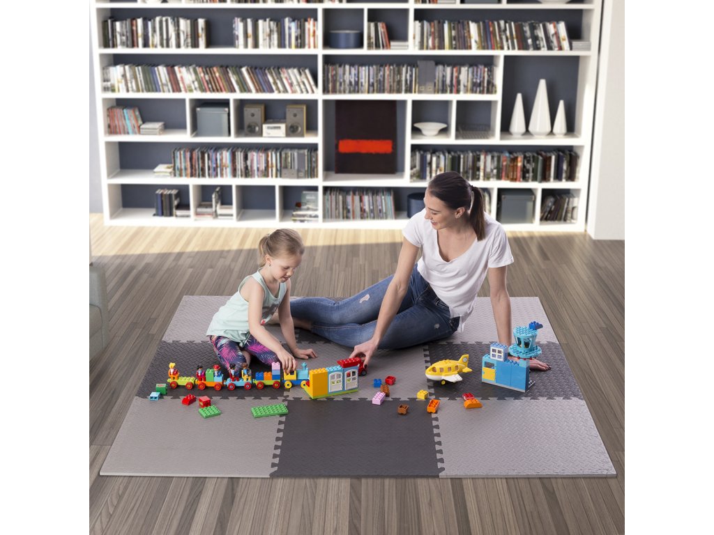 - 9 štvorcových dielov: 4 tmavo šedé, 5 svetle šedých