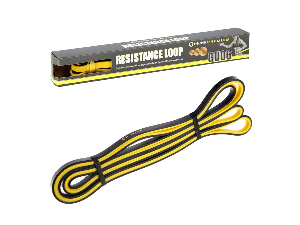 Posilňovacia, alebo odporová guma HMS Premium GU06 ako je táto pomôcka nazývaná, sa využíva najmä ako dopomoc pri zhyboch, tricepsových kľukoch a ďalších variáciách cvikov. Posilňovacie gumy sú veľmi často tiež využívané pri rehabilitačnom cvičení. Vďaka tomu, že sa nejedná o priamu záťaž, ale guma postupným ťahom vytvára odpor, je často používaným rehabilitačnom doplnkom pri úrazoch svalov, šliach a kĺbov.