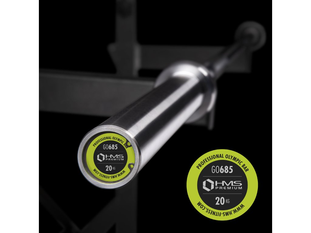 Olympijská os HMS Premium GO685 je vyrobená zo špeciálnej chrómovanej ocele, ktorá prešla procesom kalenia. Os GO685 sa vyznačuje pevnosťou v kombinácii s dokonalou pružnosťou. Súčasťou súpravy sú dva plastové uzávery ZG1000. Pevné a pohodlné uchopenie hriadeľa je zaistené vrúbkovaním na povrchu. Maximálne zaťaženie je 680 kg. Priemer úchopovej časti je 28 mm a zaisťuje vysokú odolnosť a pohodlie počas tréningu. Použitý proces chrómovania hriadeľa je zárukou zachovania jej vzhľadu po dlhú dobu jeho používania a tiež je najlepšou ochranou proti korózii. Olympijský hriadeľ HMS Premium GO685 má 4 ihličkových ložísk (2 na každej strane), ktoré umožňujú hladké a plynulé otáčanie rukávov na hriadeli. Jej konštrukcia znižuje napätie na koncoch valčekov, čo má za následok vyššiu životnosť ložísk. Napriek svojmu malému prierezu majú ihličkové ložiská vysokú tuhosť a nosnosť. Dva plastové uzávery nachádzajúce sa v balení zaručujú stabilné rozloženie záťaže na hriadeli počas tréningu. Uzávery majú vo vnútornej časti gumové elementy brániace tomu, aby sa závažie povolilo.